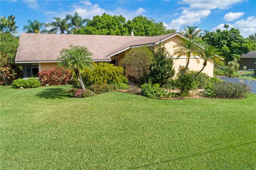 Lovely 3 bedroom 2 bathroom single family home in sought after Plantation Acres. Door open to grande formal living area w/ wood beam, vaulted ceilings, firestone pit w/ real wood burning fireplace, formal dining area, family sitting area all w/ tiled floors. Large galley kitchen w/ butcher block countertops and white and green cabinets, white appliances, large pantry and eat-in kitchen w/ tile floors. Huge master bedroom w/ walk in closet, dual sinks/dressing area. Sizable secondary bedrooms all tiled as well. Covered patio overlooking oversized pool and lush landscaping. All on 21,749 sqft lot. Great schools! Close to major highways, entertainment, shops and lots of parks.