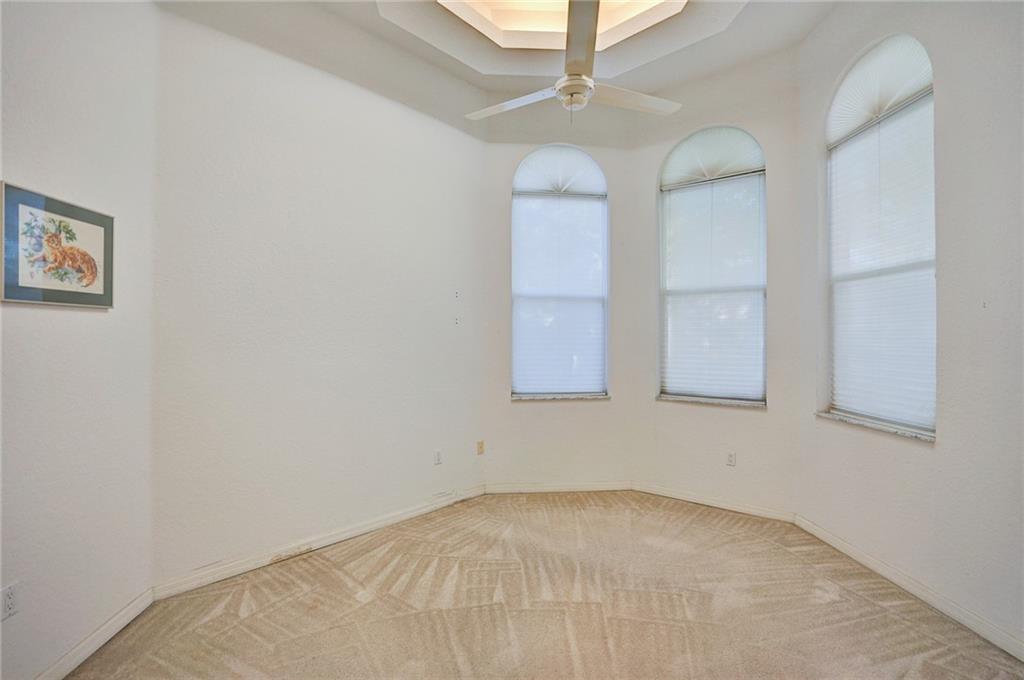 Split bedroom residence with gazebo-style windows awaits in Parkland's cozy community of Meadow Run. Featuring 15' ceilings, this home has five bedrooms and three baths, tiered tray ceilings, large 19x21 master bedroom, cul-de-sac street, oversized 19,000sf+ lot, 3 zone A/C, circular paver driveway. Ready for your custom touches and modifications. Kids can walk or bike to all three (A) rated schools.