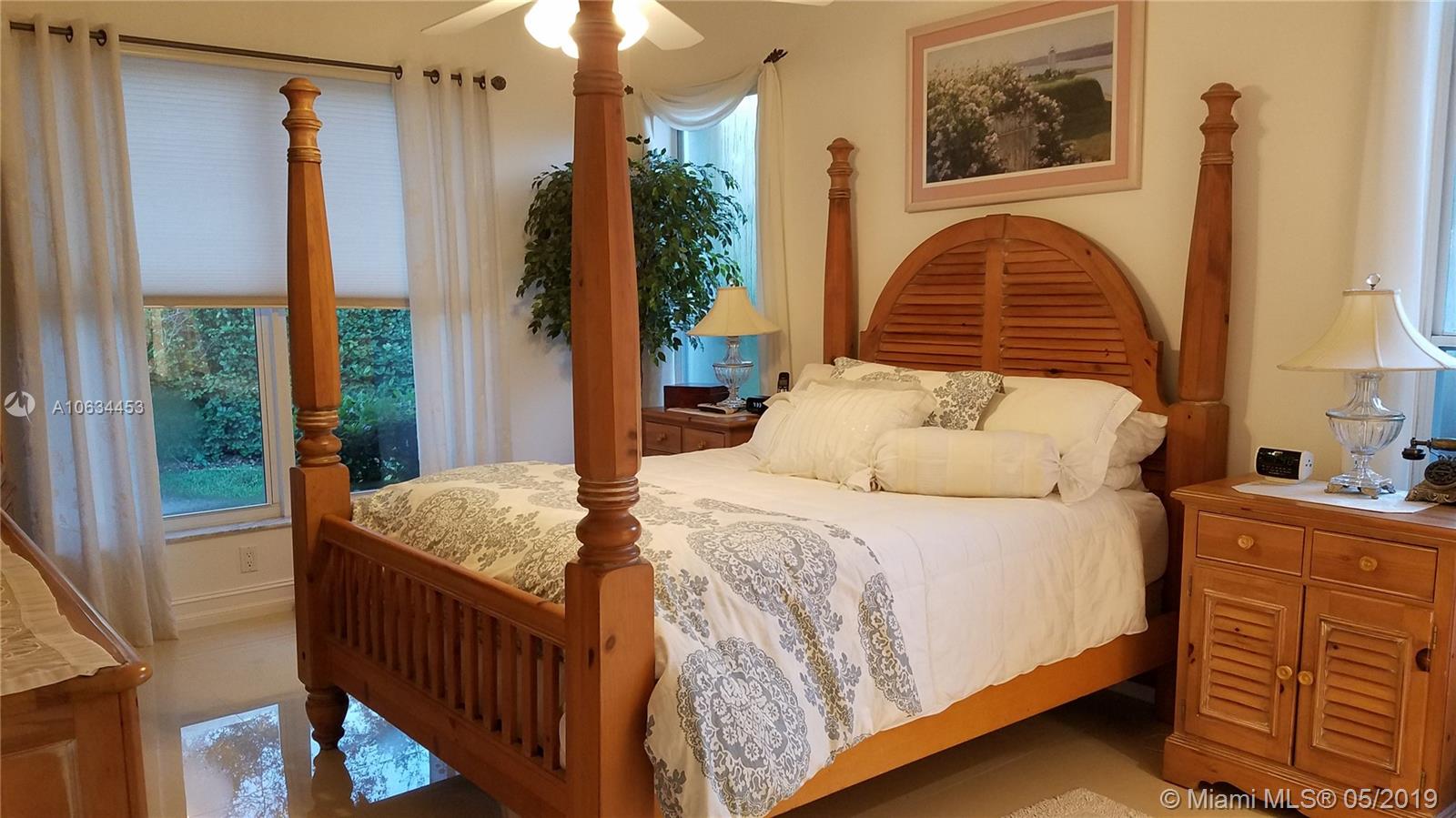 ONLY POOL HOME..Lush Grounds..LARGEST Fenced Lot.."OAK" Model Split 3BD/2 BA+Family Rm..Bright Sunny Home w/10' Ceilings, Soft Ivory Backgrounds, Custom Window Shades, Crown+Base Molding, French Ivory Porcelain Floors & Recessed Lighting in All Living Areas..Upgraded Kitchen w/Island, & "Culligan" Water Sys.. Windowed Breakfast Area, Custom Wood Cabinets w/Soft-Close Glass Doors, Granite Counters, SS Appliances..Laundry Rm w/Cabinets, & "LG" W/D w/Storage Draws..Marble Updated Baths w/Roman Tub..Patio w/Pavers Surrounds 25'x15' Heated Pool & Hot Tub...Full Security System w/Alarm, Lighting, Integrated RING Door Bell & Installed Accordian Shutters..Auto Sprinkler System..2 Car Garage w/Hurricane Door & Wall of Cabinets..Driveway Fits 4 Cars..BUYERS' AGENT WELCOME..Walk to House of Worship..