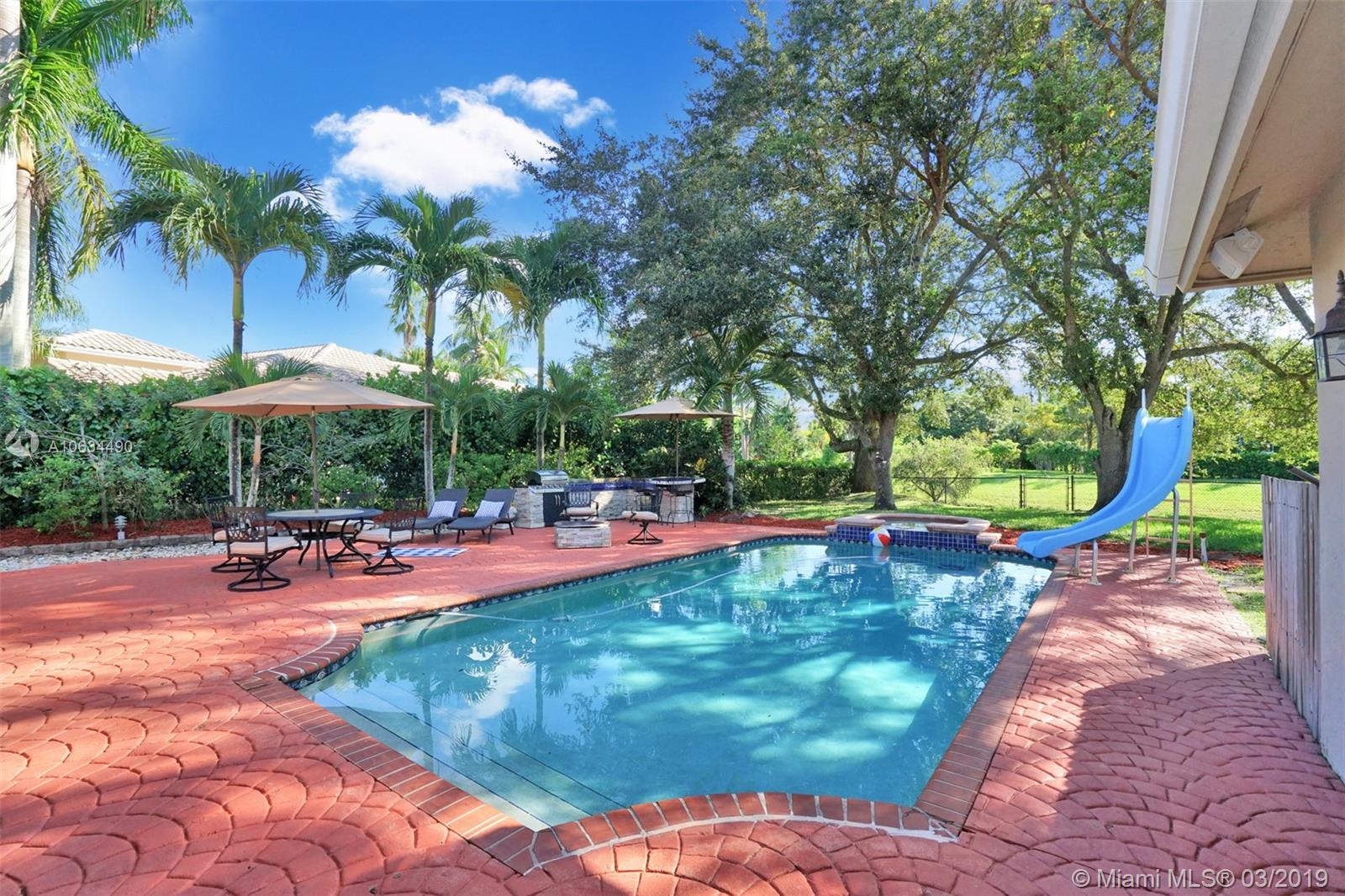 This custom Pine Ridge home is privately set on a commanding, rarely available oversized cul-de-sac waterfront lot. The grand entrance opens up to generous living spaces with volume ceilings, wood & tile floors, high hat lighting & impact windows. The open planned kitchen allows you to chop, stir & socialize while providing an abundance of cabinet & pantry space. The substantial master suite comes complete with dual walk in closets, jacuzzi tub, dual vanities, walk in shower & a cabana door leading to the pool. Grill, swim & relax on the oak lined pool deck offering private & tranquil views of the canal. This beautiful property also offers a full family room & Florida room, outdoor bbq area, fully fenced back yard, circle driveway, side entry garage, Kohler finishes & more!