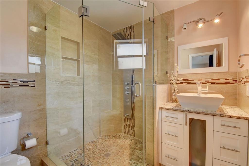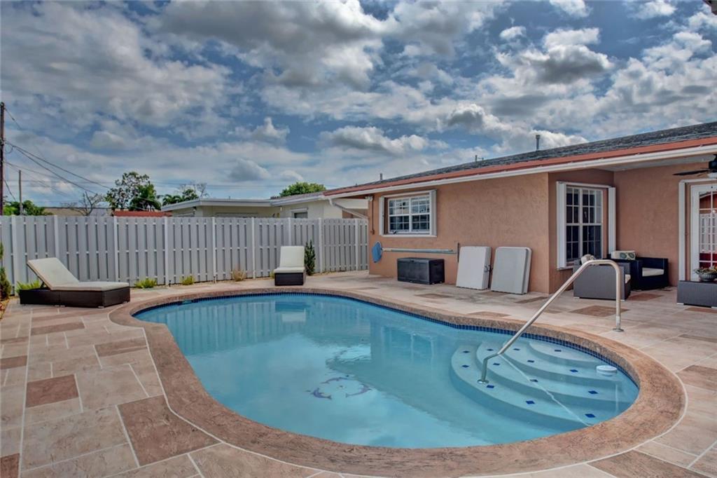 MOTIVATED SELLER. Completely remodeled 3 Bedroom, 2 bath, private pool, modern white aluminum fence. Totally renovated, 24"x 24" rectified tile throughout, recessed LED lights, new windows with accordion shutters and impact doors. Stainless appliances, new trendy white wood kitchen cabinets, side by side refrigerator, gas stove, gas dryer, granite, modern remodeled bathrooms with massage jet spray shower panel, frameless shower doors, recessed covered patio, newer roof, Nest thermostat, newer A/C, updated electrical panel, walk-in closets, freshly painted in neutral colors. Lots of natural light. Convenient to shopping and businesses. Garage has been converted to an office with plenty of tool storage left over. NO HOA.