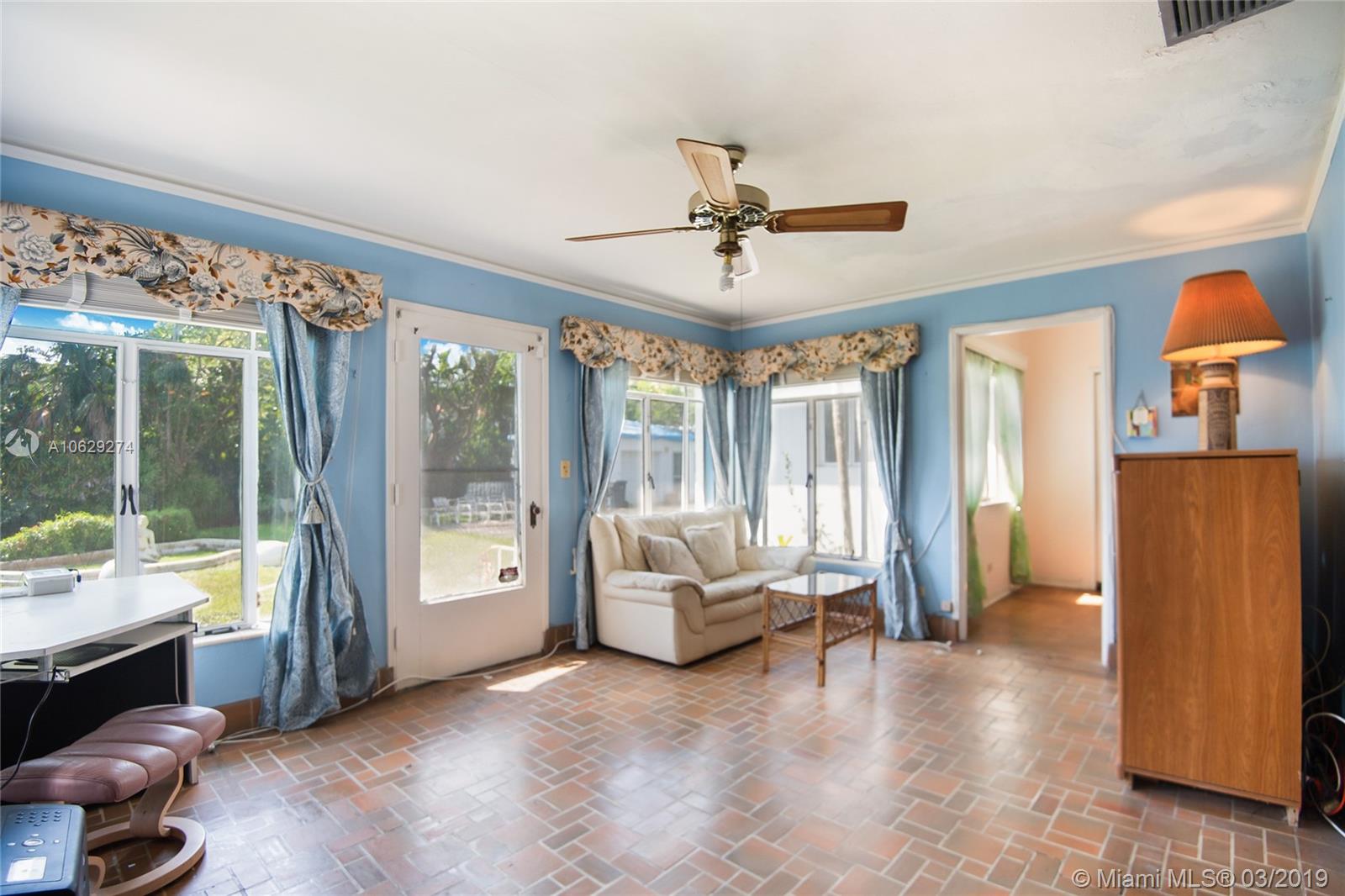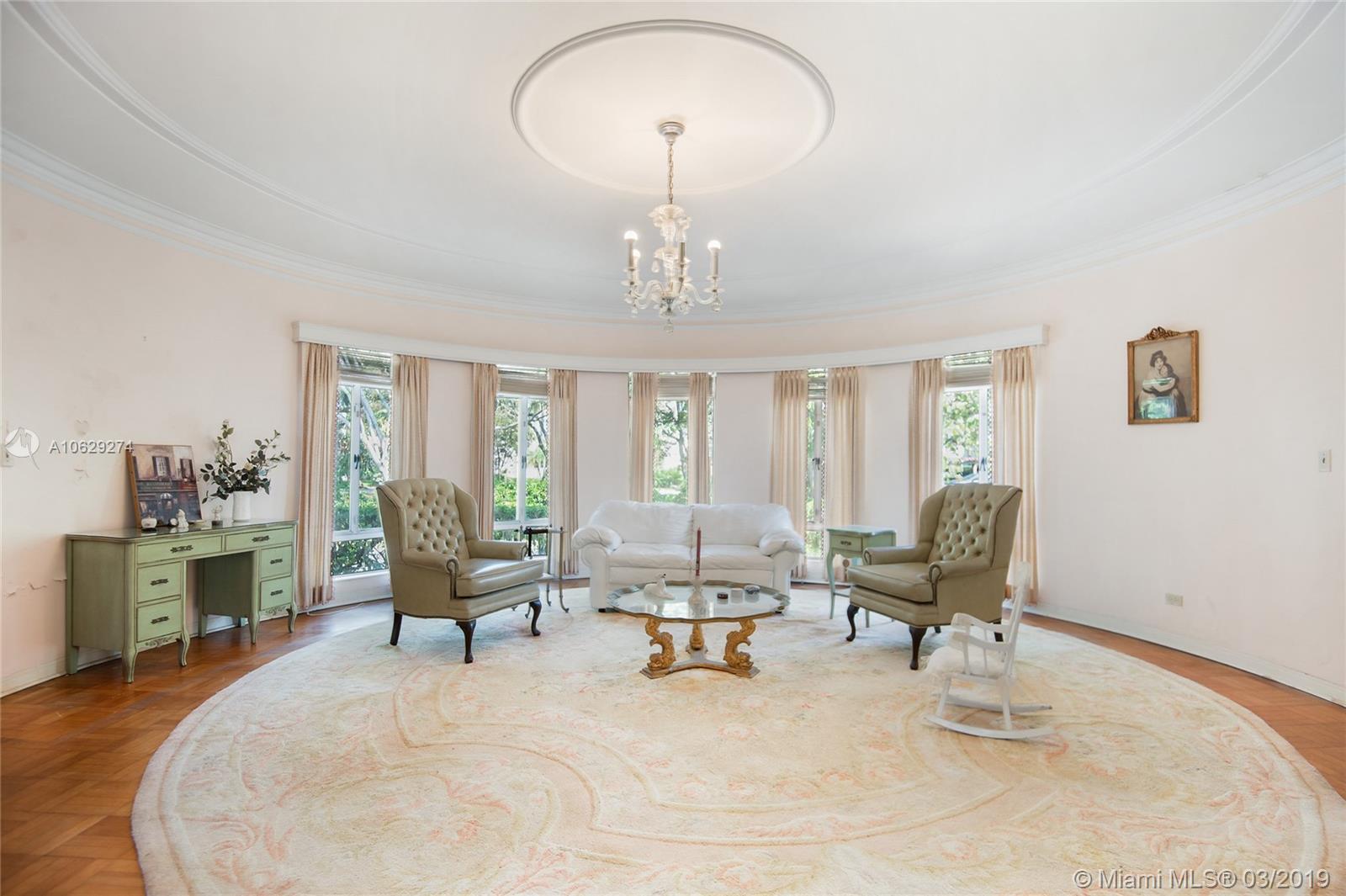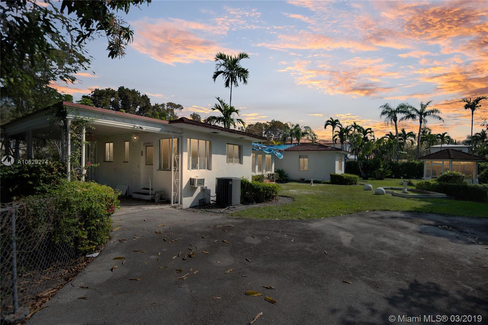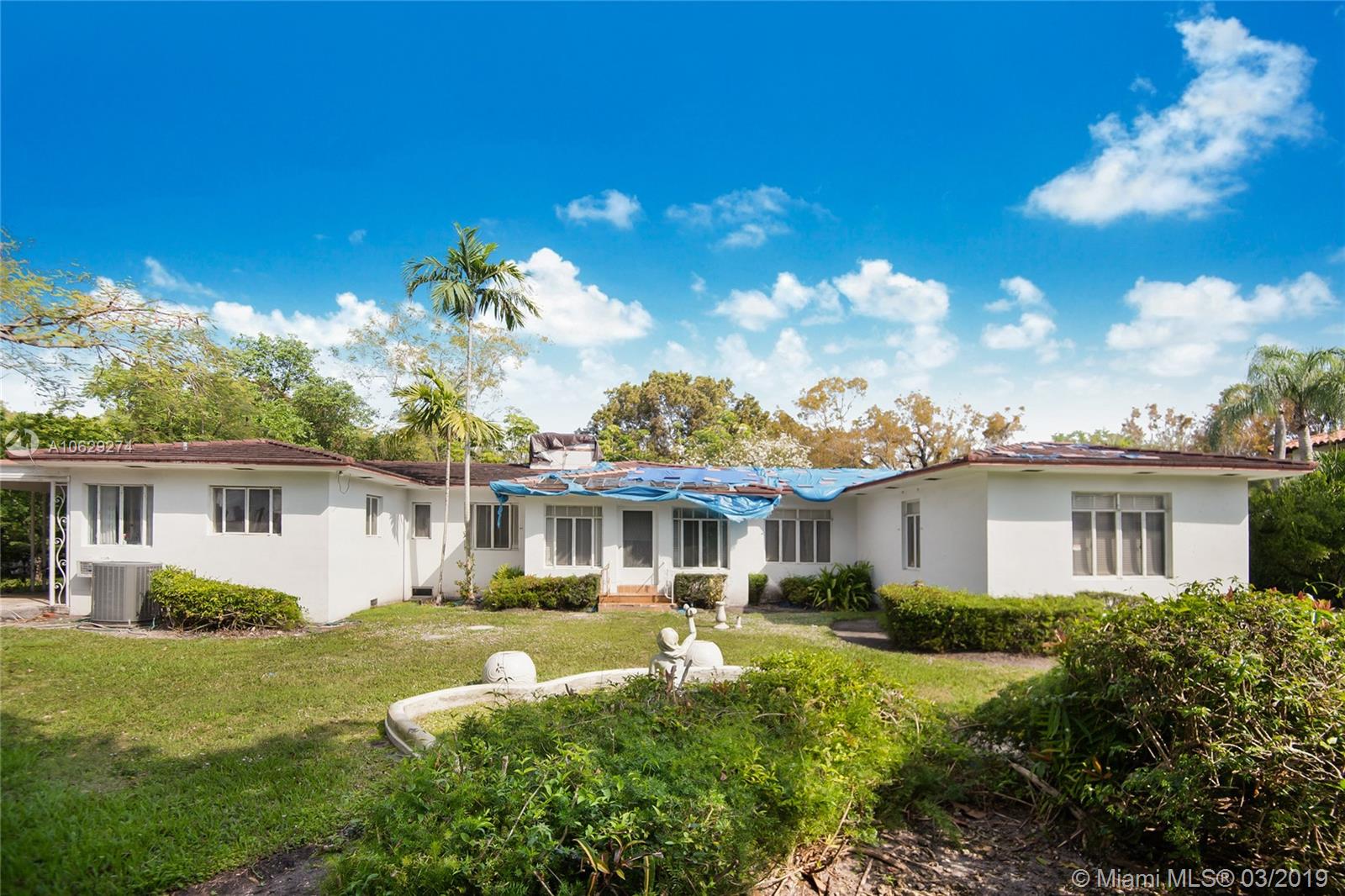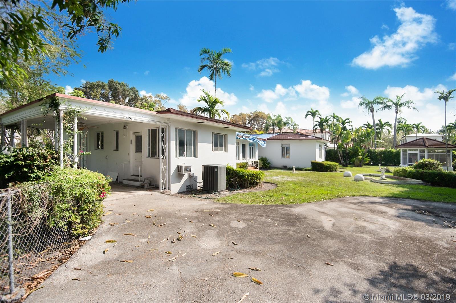 Unique, beautiful one story 1940s gem on a half acre, with 1/1 guest house and single car garage ready to be transformed into your dream home. Special features include: two front doors, a round living room with tray ceiling, original hardwood floors, original etched glass doors, period mirrors and tiles in en-suite bathrooms and powder room, family room which opens out to the large yard, dining room with built-in china cabinet, foyer, and study. Kitchen has original tile, cabinetry, and small bar. A large laundry room is just off the kitchen. A quaint screened gazebo sits in the back of the large and open garden. Needs new roof, plumbing and substantial updating. Ample space to expand sq. footage and pool. Once updated, it will be among one of the most spectacular homes in the Gables.