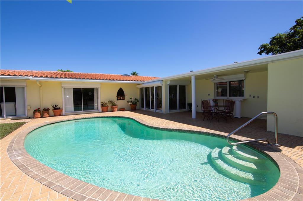 Enjoy pool and waterfront views from most every room in this classic Landings residence. Situated on over a third of an acre this spacious home features four bedrooms each with a private bathroom, a magnificent family room with a wet bar, a huge master bedroom with a sitting area, custom cabinetry, new dock, hurricane shutters and more. This ocean access home has no fixed bridges and is located just two minutes from the intracoastal. This house is ready for your decorator touches and could easily accommodate an in-law suite.