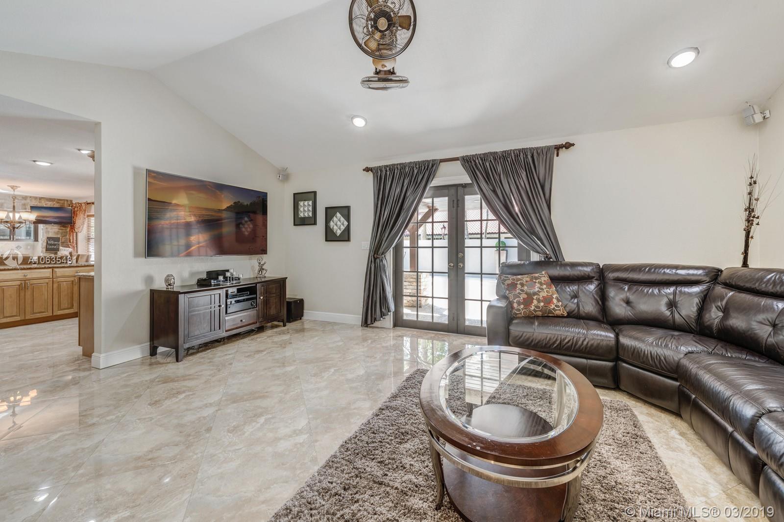 THE SEARCH IS NOW OVER! This ONE OF A KIND spectacular 5 bedroom 3 bathroom home with a pool sits on an oversized pie shaped lot at the center of a private cul-de-sac. Custom designed home that offers a split floor plan (in law living quarters with own bathroom), Specially designed indoor and outdoor gorgeous brick fireplaces. BRAND NEW ROOF, HURRICANE IMPACT WINDOWS, BRAND NEW AC/AIR DUCTS, BRAND NEW SOLAR PANEL/POOL PUMP, 24X24 Porcelain tile flooring, BRAND NEW ENGINEERED WOOD FLOORING in rooms, BRAND NEW WATER HEATER. CUSTOM BUILT Wet Bar! Master Bath/2nd bathroom all redone. 2 car garage, NEW landscaping + fencing, SURROUND SOUND SPEAKER INDOOR AND OUTDOOR, SMART HOME (RING DOOR BELL/SMART SWITCHES/ 24/7 Camera surveillance), Two separate oversized yards! OVER $200,000 in upgrades!!