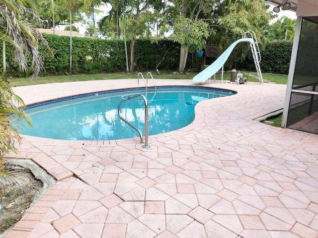 BEST PRICE IN MIRROR LAKES! WONDERFUL 3/3 (YES 3 FULL BATHS) POOL HOME LOCATED ON A LARGE (1/4 ACRE) CORNER LOT. BACKYARD IS LOVELY AND INCLUDES A BIG SCREENED PATIO, AN INVITING POOL, PLENTY OF ROOM FOR THE KIDS TO PLAY AND VERY PRIVATE. BEAUTIFUL TREE LINED STREET & CLOSE TO SCHOOLS. CONVERTED GARAGE HAS MOTHER IN LAW SUITE WITH IT'S OWN KITCHEN. BATH & SEPARATE ENTRANCE. INSIDE LAUNDRY ROOM TOO! FLOORS ARE LAMINATE AND TILE. NEWER APPLIANCES. NEWER ROOF(2013) & HURRICANE IMPACT WINDOWS(2009) TOO!! GREAT CURB APPEAL WITH A CIRCULAR DRIVE FOR AMPLE PARKING. BIG SCREENED IN PATIO TOO. A GREAT HOME FOR YOUR FAMILY NOW AT A MUCH REDUCED PRICE...A GREAT VALUE!