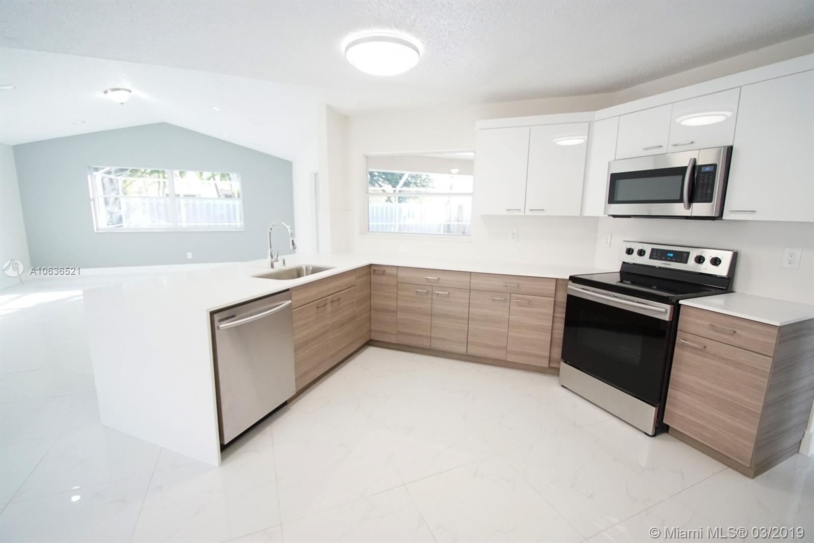 This home features 5 Bedrooms 3 Full Baths One of a kind fully renovated home with a 2 car garage. Large patio with a Pool and screened Patio/terrace. Professionally decorated w/ Tiles & Laminate Floors. Modern kitchen w/ quartz counter tops and NEW stainless steel appliances. All Bathrooms remodeled w/quartz tops. Large Layout w/High ceiling. 1 bedroom downstairs, NEW fresh Interior/Exterior Paint. The Residents have access to enjoy the community park, lake, playground, and more. TURN KEY Ready.