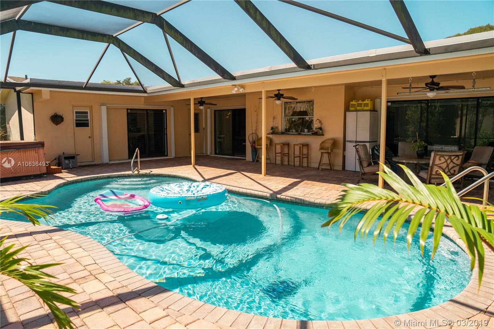 There is no reason to look further for your dream home! As you drive down this private Cul-de-Sac street and park on a lovely stamped concrete circular driveway you’ll want to call this Home! This 2700 sqft, 4 BR, 2.5 Bath Single Story Home, boasts pride of ownership everywhere your eyes take you. Some highlights included are Sunken LR with New Bay Window leading to updated Eat-in Kitchen, 24x20 Game Room, Family Room/BR with sliders and Formal DR with Sliders to the 43x33 Screened in Patio, Newly resurfaced Pool w/new motor, 5 person Hot Tub overlooking fenced yard surrounded by rose bushes and a mango tree that backs to a canal leading to a tranquil lake. In addition, new 50yr Architectural Roof, Irrigation System w/Timer and a 5ton Lenox AC with New Motor and Solar Home Water Heater.