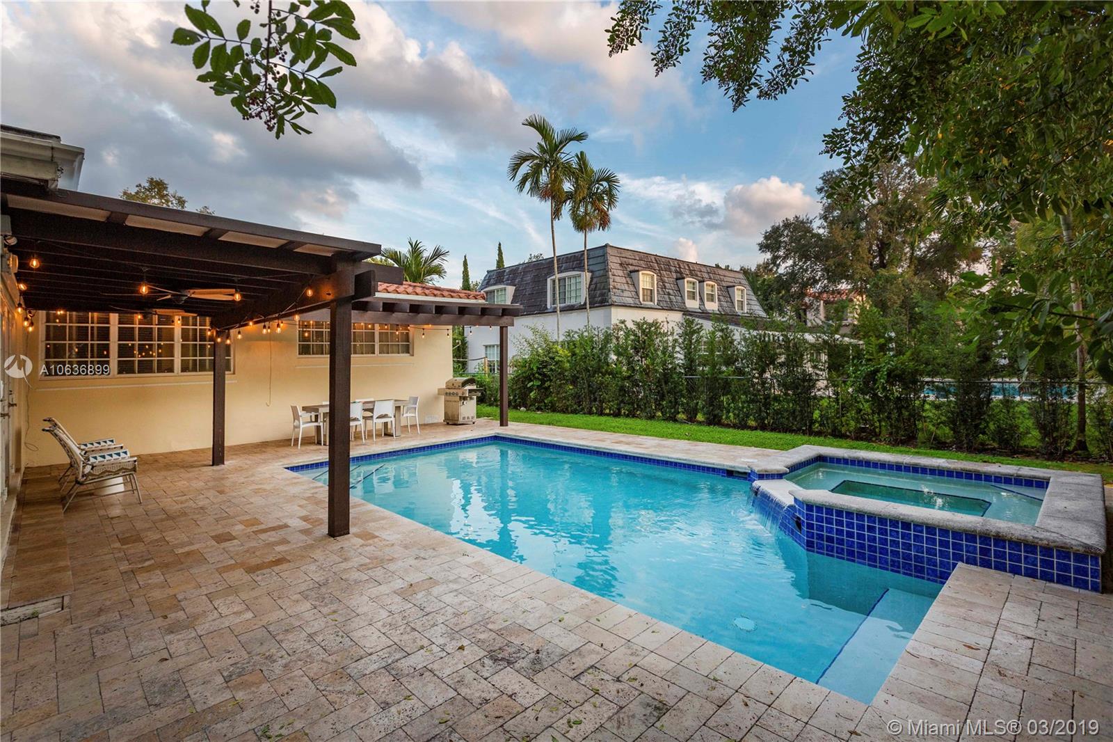 Spacious & inviting Open-Plan home on prestigious Country Club Prado in Coral Gables. 4-bedroom, 4.5-bathrooms, + an office or den. Fabulous for entertaining with a very large family room that opens to a generous patio & sparkling pool with hot-tub. Travertine & updated bathrooms and kitchen, Stainless Steel Appliances and security system that includes state of the art Cameras. Walk to Country Club Prado’s endless park. 10-Minute Walk to the Granada Golf Course, Blocks from Publix, Pharmacies & restaurants. 5-minute drive to Blue Lagoon, Downtown Coral Gables, The Biltmore & the University of Miami. 10-minute drive to the Airport, Coconut Grove and South Miami. 2-car garage & plenty of room to park a 30ft boat behind a gate. This is a great place to live and raise a family, don’t miss it.