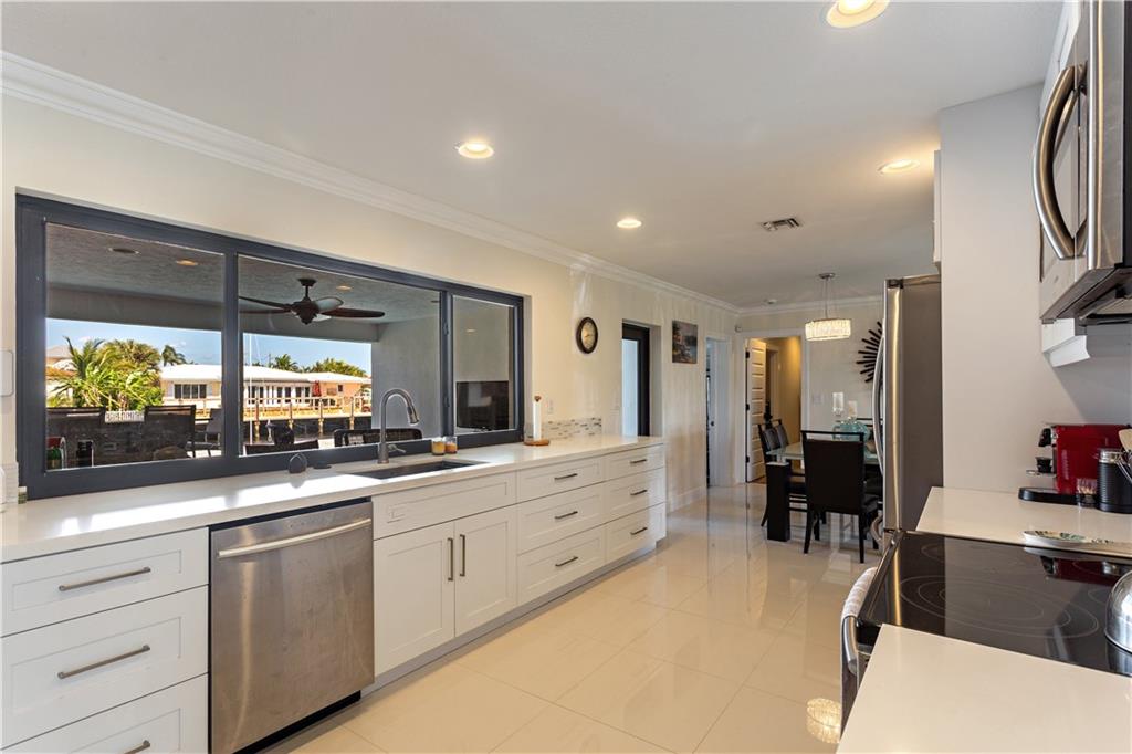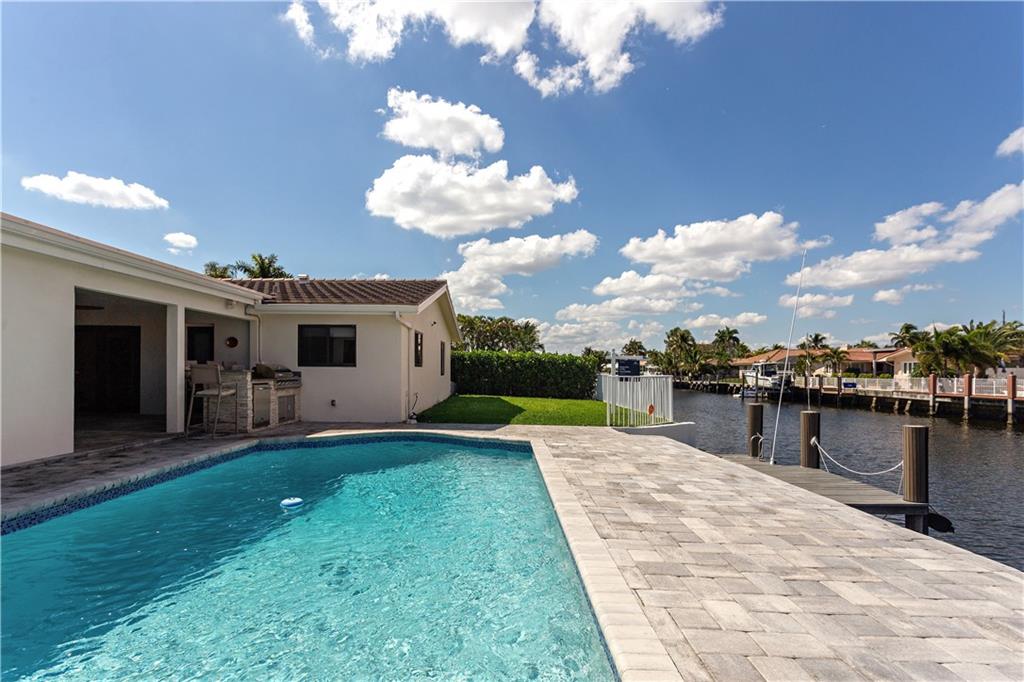 85' Waterfront home completely renovated comprising 4-bedroom + Den, 3-bath & featuring a great open floor plan with wood cabinetry kitchen, top of the line appliances and quartz countertops & Ocean access. Large Master suite with large his and her closets with built-ins, luxury master bathroom with dual vanities, soaker tub, and expansive shower with multiple rain heads. The den is located next to the master suite and it could be used as den or office. The 3rd bath features a Jack and Jill sinks and a French door accessing the pool and covered patio area. The home features an oversized garage and a large laundry room with built-in cabinets and a high-efficiency washer/dryer. The indoor-outdoor flow in this home is amazing for family lifestyle, entertainment or boating. Motivated Sellers!
