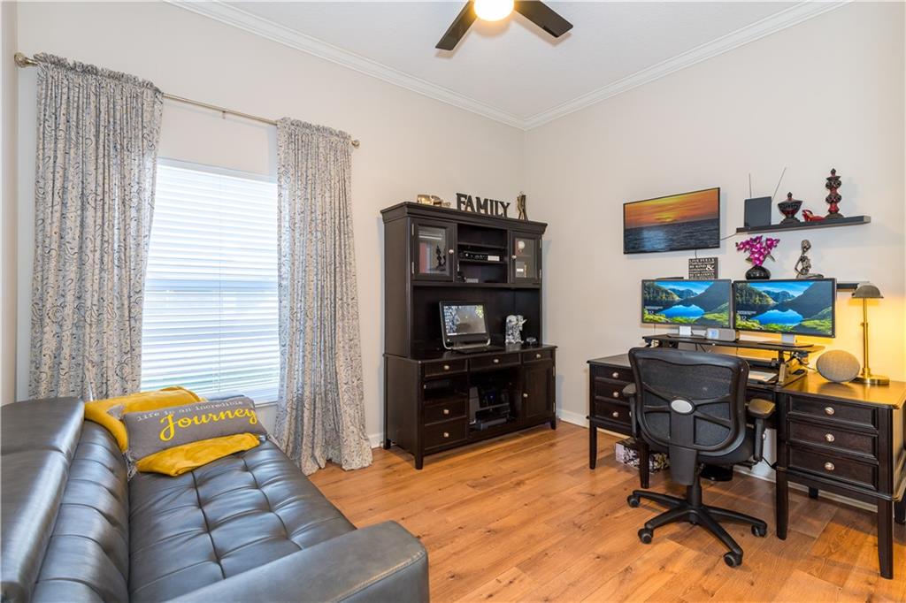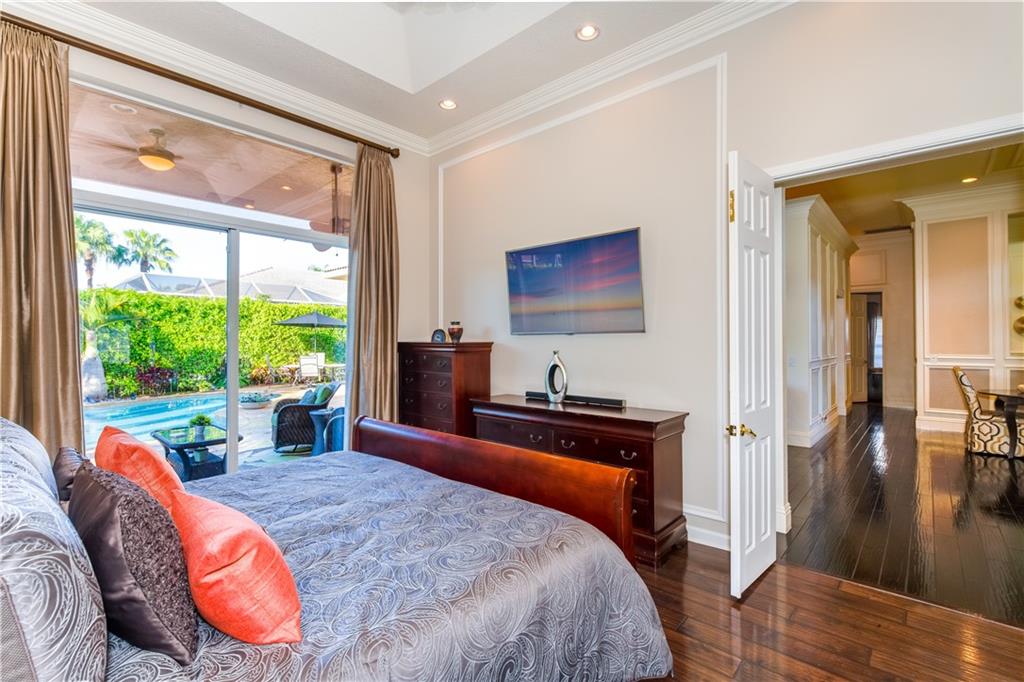 Gorgeous, warm & inviting 4-bedroom (split plan), 3-bath, 3 car garage pool home is magnificent & upgraded w/designer touches including hardwood floors, 12' tray & coiffured ceilings, crown moldings throughout, and decorative wood trimmings, and all updated bathrooms. Newer Georgian kitchen w/upgraded cabinetry, granite & stainless steel appliances, built-ins and pull-out drawers. Spacious master suite, remodeled bathroom, dual sinks, marble floors, Jacuzzi tub, custom walk-in closets. Seated on a beautifully landscaped corner lot in gated Pelican Isle, Wyndham Lakes, the resort-like backyard with state-of-the-art salt-water pool & entertainment area, on a rich, travertine marble patio, in lush, tropical surroundings tucked inside a privacy hedge.