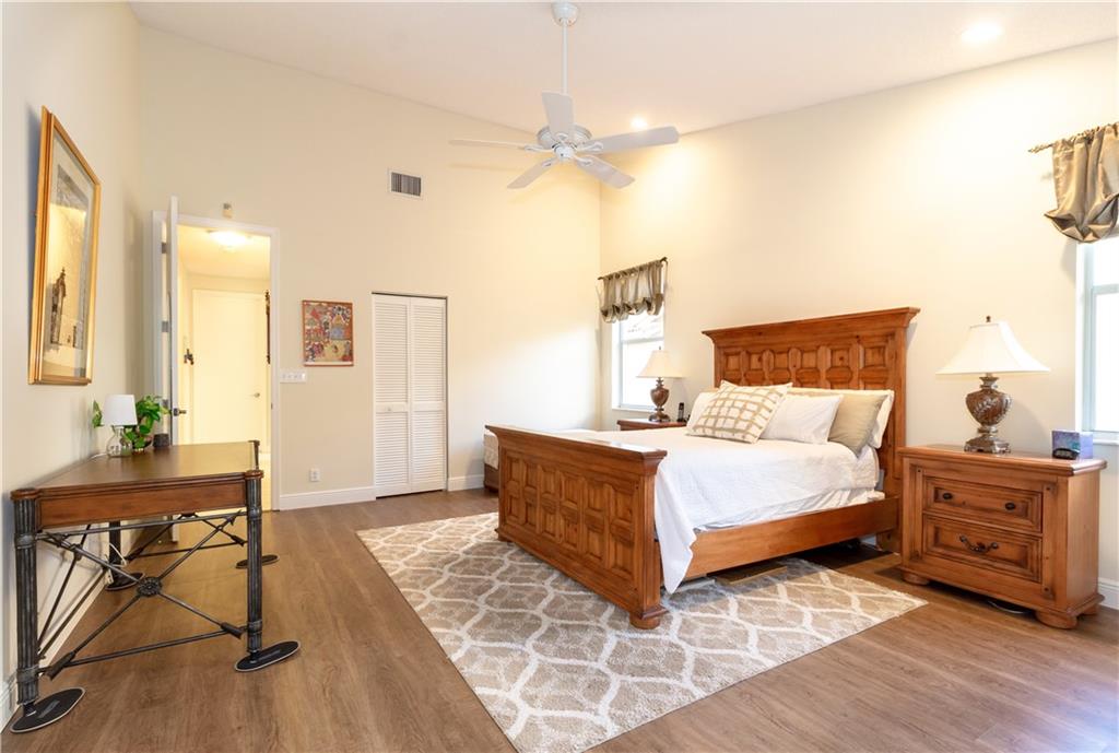 Gorgeous one story home in the gated community of The Isles at Silver Lakes. This home has 4 large bedrooms with excellent closet space, and 2 1/2 baths. Remodeled kitchen with gorgeous real wood cabinetry, granite countertops, decorative backsplash, stainless steel appliances, large breakfast area and a snack bar. The formal living room has all new beautiful engineered wood flooring. The backyard is perfect for entertaining with lots of privacy. The custom, oversized swimming pool sits within a screened enclosure and has a large covered sitting area. You will have peace of mind as this home comes with a brand new roof.