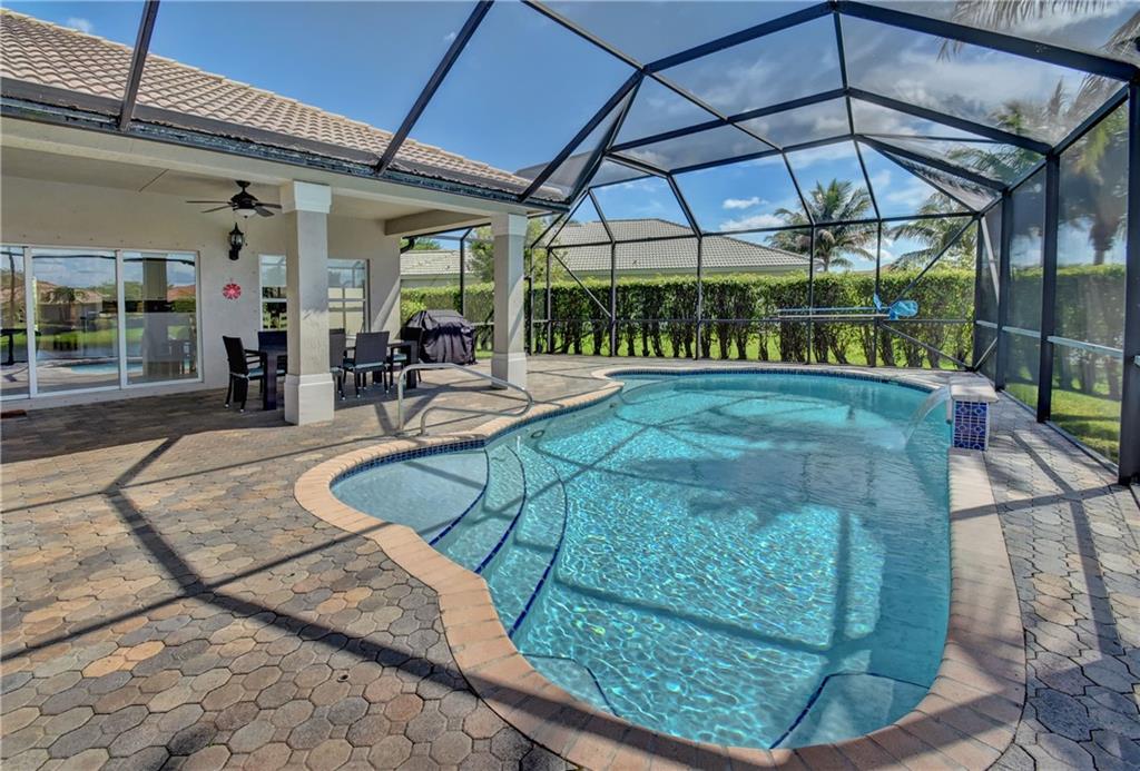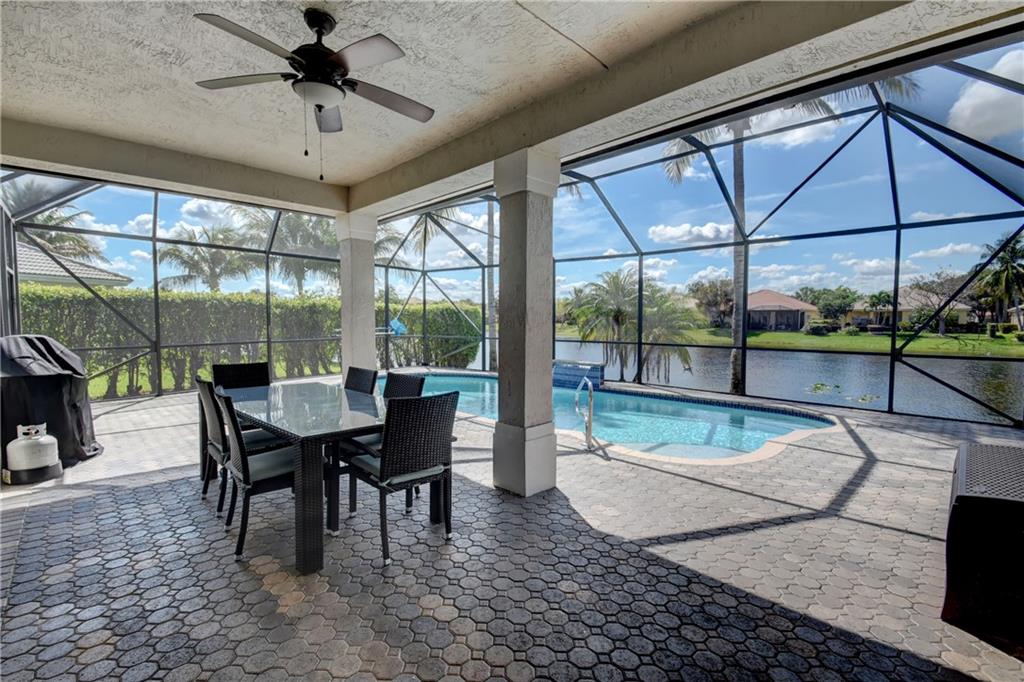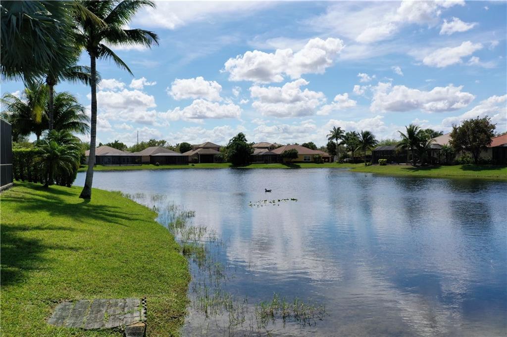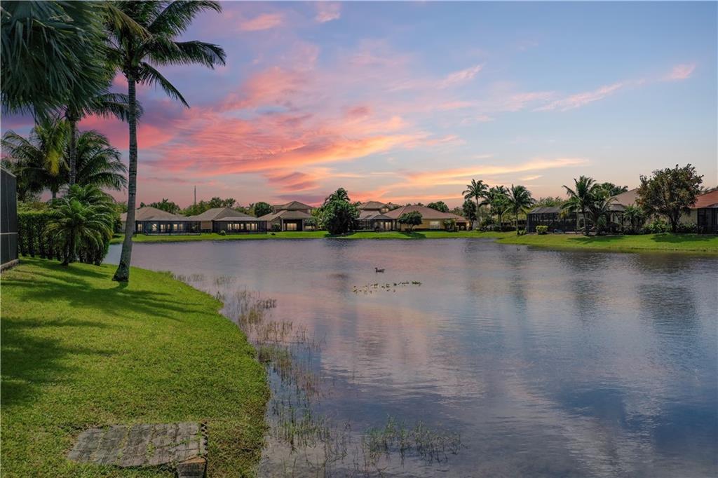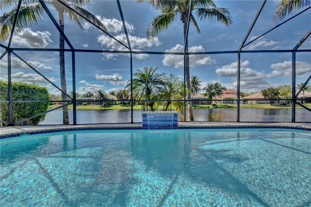 This 3 bedroom, 2 bath home pool home is located on an awesome water lot with amazing water and sunset views!!! Tile and laminate flooring through out the home. Frame-less shower. Newer A/C. Newer Washer & Dryer. House water filtration system. Formal dining room has been converted to an office. Cul-de-sac. Gated community with 24-hour manned guard gate, clubhouse, heated community pool, tennis, basket, exercise room plus much more.