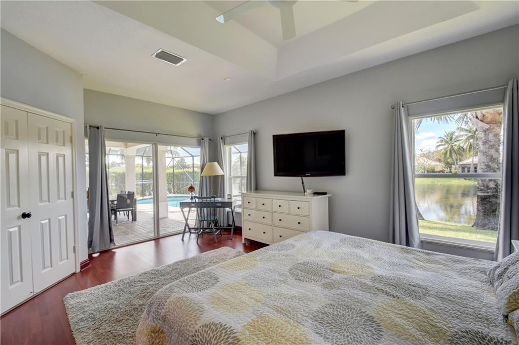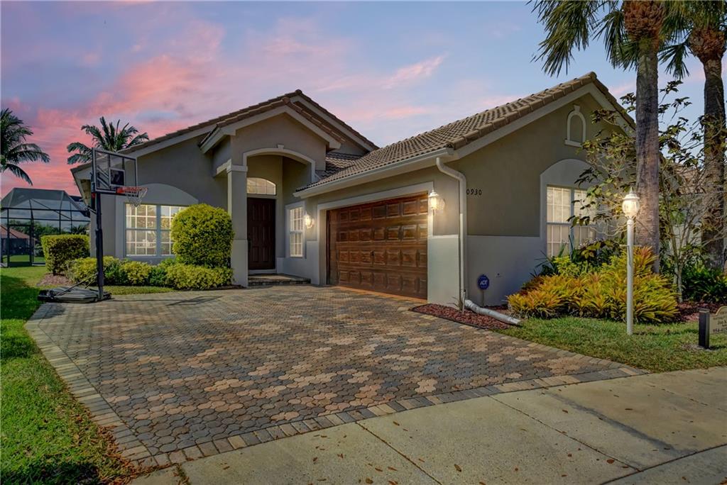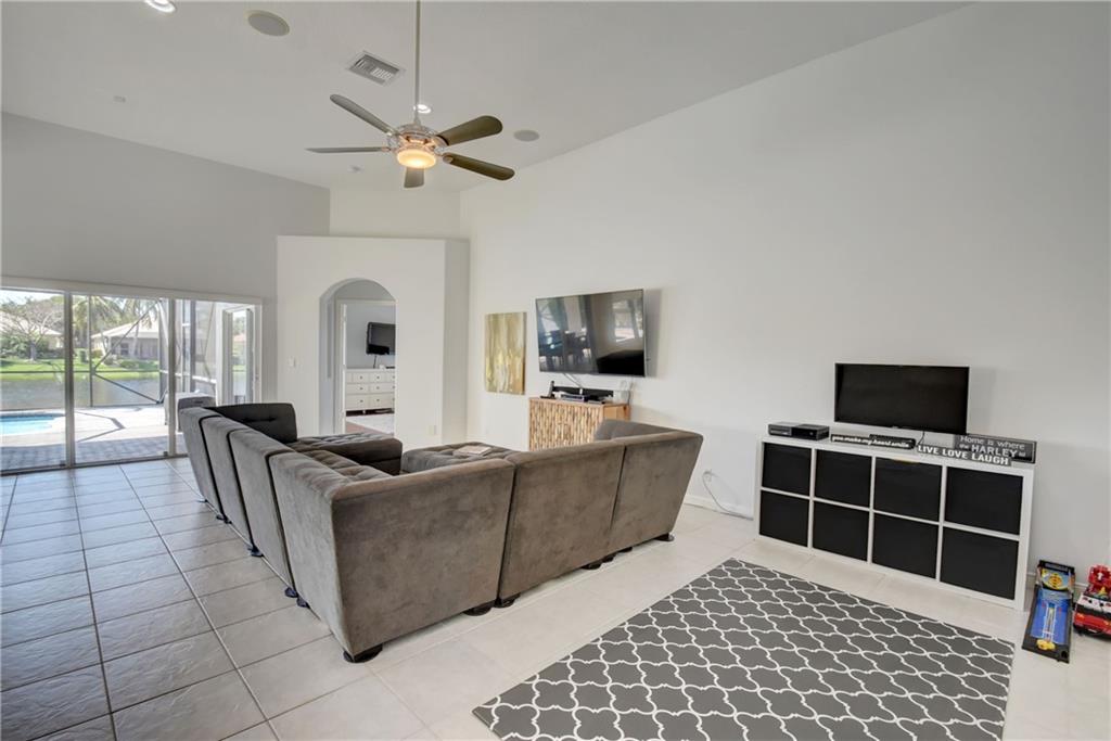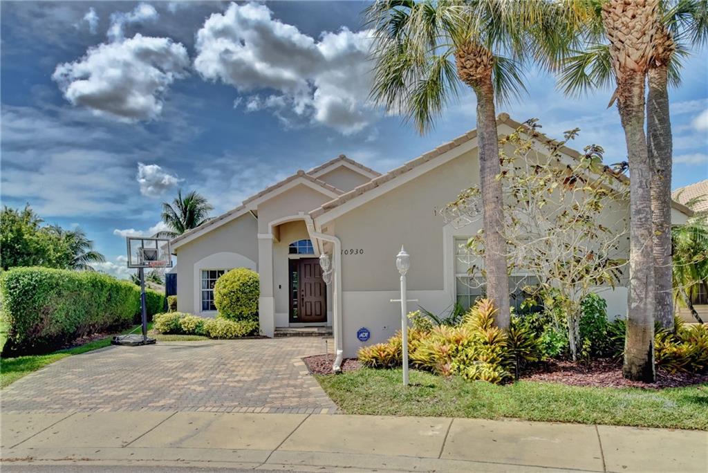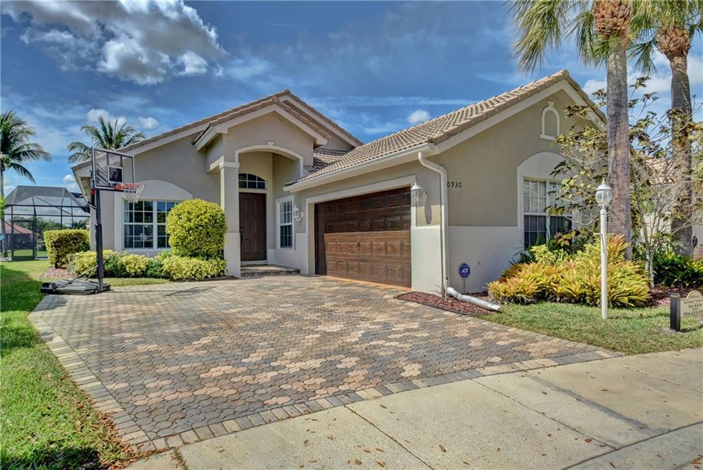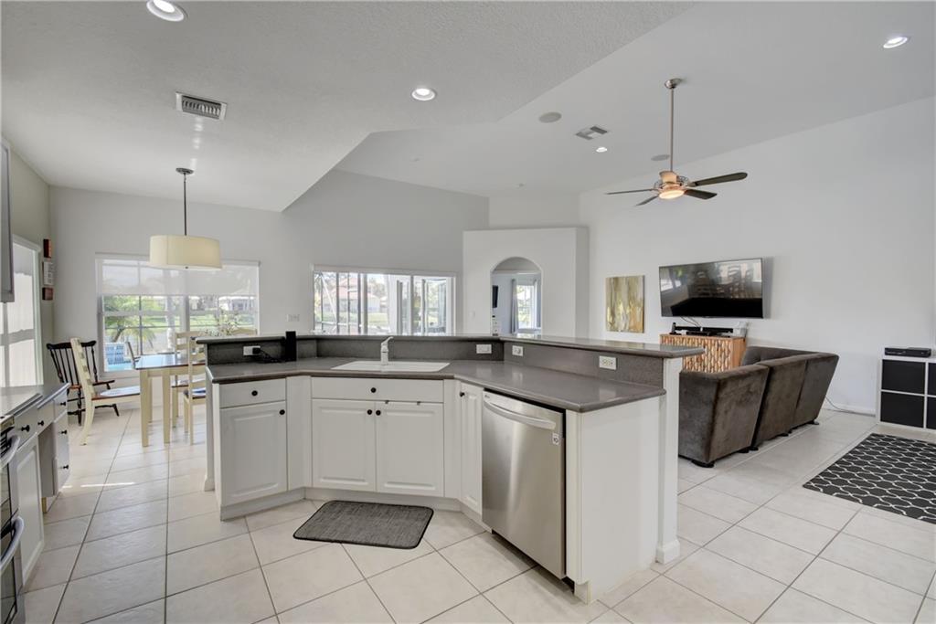 This 3 bedroom, 2 bath home pool home is located on an awesome water lot with amazing water and sunset views!!! Tile and laminate flooring through out the home. Frame-less shower. Newer A/C. Newer Washer & Dryer. House water filtration system. Formal dining room has been converted to an office. Cul-de-sac. Gated community with 24-hour manned guard gate, clubhouse, heated community pool, tennis, basket, exercise room plus much more.