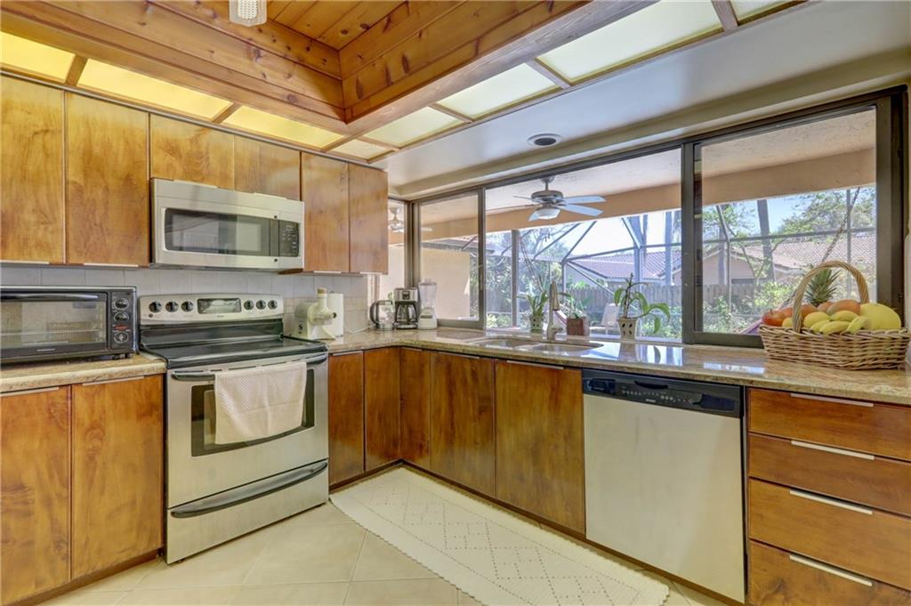 Fantastic single story 3Bed/2Bath pool home in Nob Hill Estates! Remodeled kitchen features wood cabinetry, granite counter tops, stainless steel appliances & large pantry! Neutral ceramic tile flooring throughout the home. Vaulted ceilings with tons of natural light. Beautiful master bathroom with double vanity, framed mirrors & shower. View of the screened in pool area & large yard from every living room in the home. Indoor laundry room. Roof replaced in 2007. AC 2010. No HOA! Central Park Elementary A rated school within walking distance.