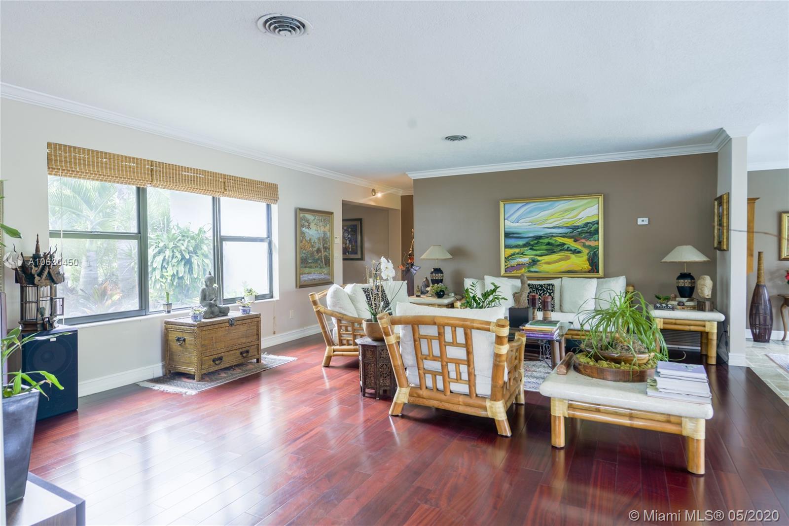 Live in wonderful Pinecrest in a lovingly cared for home. Enjoy the large open living room spaces which open to the beautiful pool via 6 sliding doors. This is a "home" which has a peaceful feeling and is in move in ready condition. The kitchen is open to the living areas and updated. Two of the 3 baths open to the pool patio. The very clean and well kept wood and Terrazo floors are beautiful. The home is situated on a large lot, 15,000 sq ft. New central air cond. year 2020. Roof is only 3 years old, 2 car garage & hurricane shutters protection. Interactive 3D video available