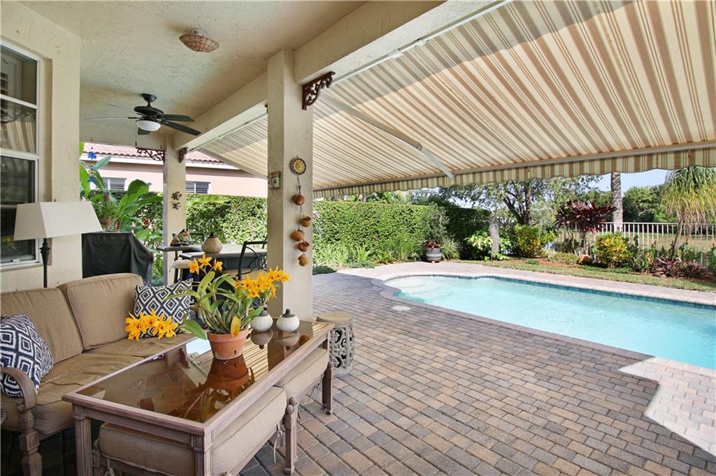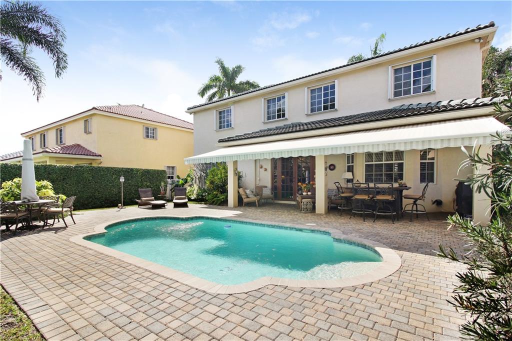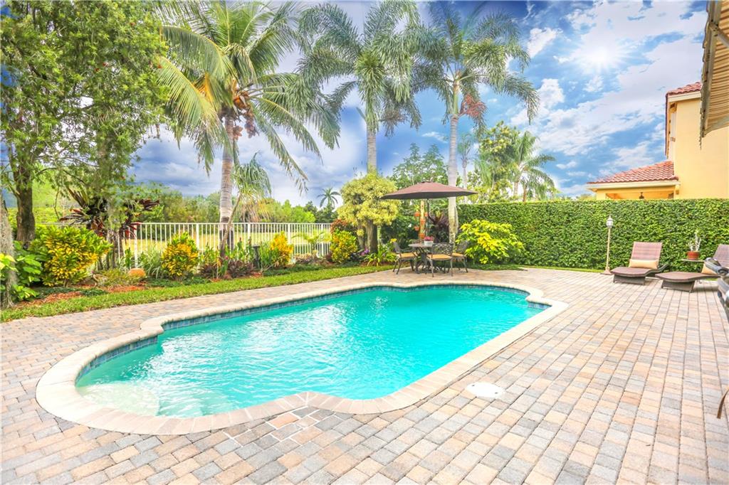 PRICE REDUCE TO SELL! Immaculate Gladiola model pool and waterfront home located in the desirable gated resort style community of Savanna. 1st floor recently painted and recessed lighting installed in living room. Home features 5 bedrooms, 4 full baths with 2 car garage, separate living room, dining room and family room. 1 bedroom and 1 full bath are located on the first floor and 4 Bedrooms located upstairs. Large kitchen has wood cabinets, GE Profile SS appliances, Corian counter-tops and breakfast nook. Step outside thru the french doors to view the sparkling pool and enjoy the peaceful lake views while relaxing and entertaining on your covered lanai with retractable awning. Home is tiled on the 1st floor and real wood floors located on stairs and 2nd floor. Laundry room on 1st floor.