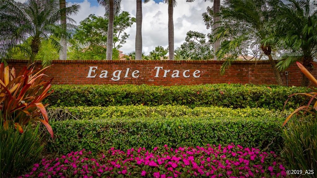 WATCH THE VIDEO. Immaculate home in the picturesque neighborhood of the Hamptons, tucked away inside the guard gated community of Eagle Trace. This incredible home is situated on a cul-de-sac, close to the pool, spa and tennis courts. The Ashbury model has a spacious floor plan with plenty of natural light. It features vaulted ceilings, clerestory windows, crown molding, real wood floors in the living rm, hallway & bedrms – no carpeting. The 3rd bedrm is used as a guest room - office. There is a screened brick paver patio, a family room with a huge picture window. The upgraded kitchen is gorgeous, the oversized master suite has a sitting area, double French doors, a trey ceiling and wood floors. The master bath has a Jacuzzi, glass shower & double sinks. Even the furniture is negotiable