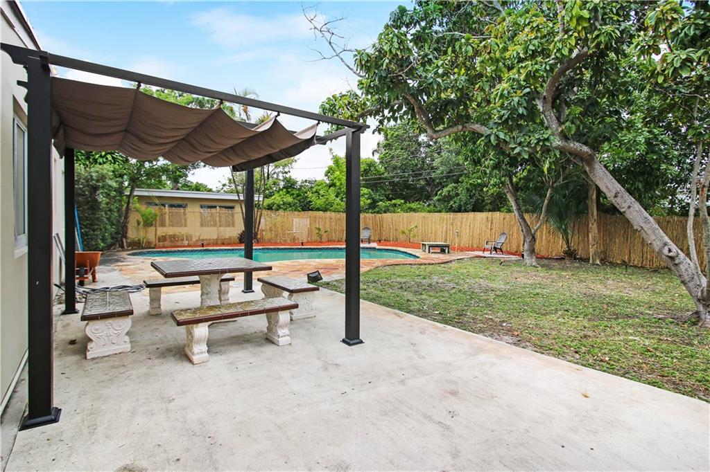 Fully remodeled home with classical character! Brand new roof, impact windows, central air. Extremely large lot fully fenced lot with a huge swimming pool, large patio area to grill on with a new pergola for partial shade, luscious landscaping, royal palm tree, fruit trees and tons of room to entertain. Gorgeous kitchen with eat in bar top. Terrazzo floor throughout the home and charming brick tile in the kitchen. Pool pump and tank are new + recently resurfaced. Nice Location next to all major highways, Ft. Laud airport, TriRail, shopping, downtown & the beach. Quiet neighborhood, no association. This home will not last! Come and see for yourself!! Do not miss the opportunity to make this home yours!
