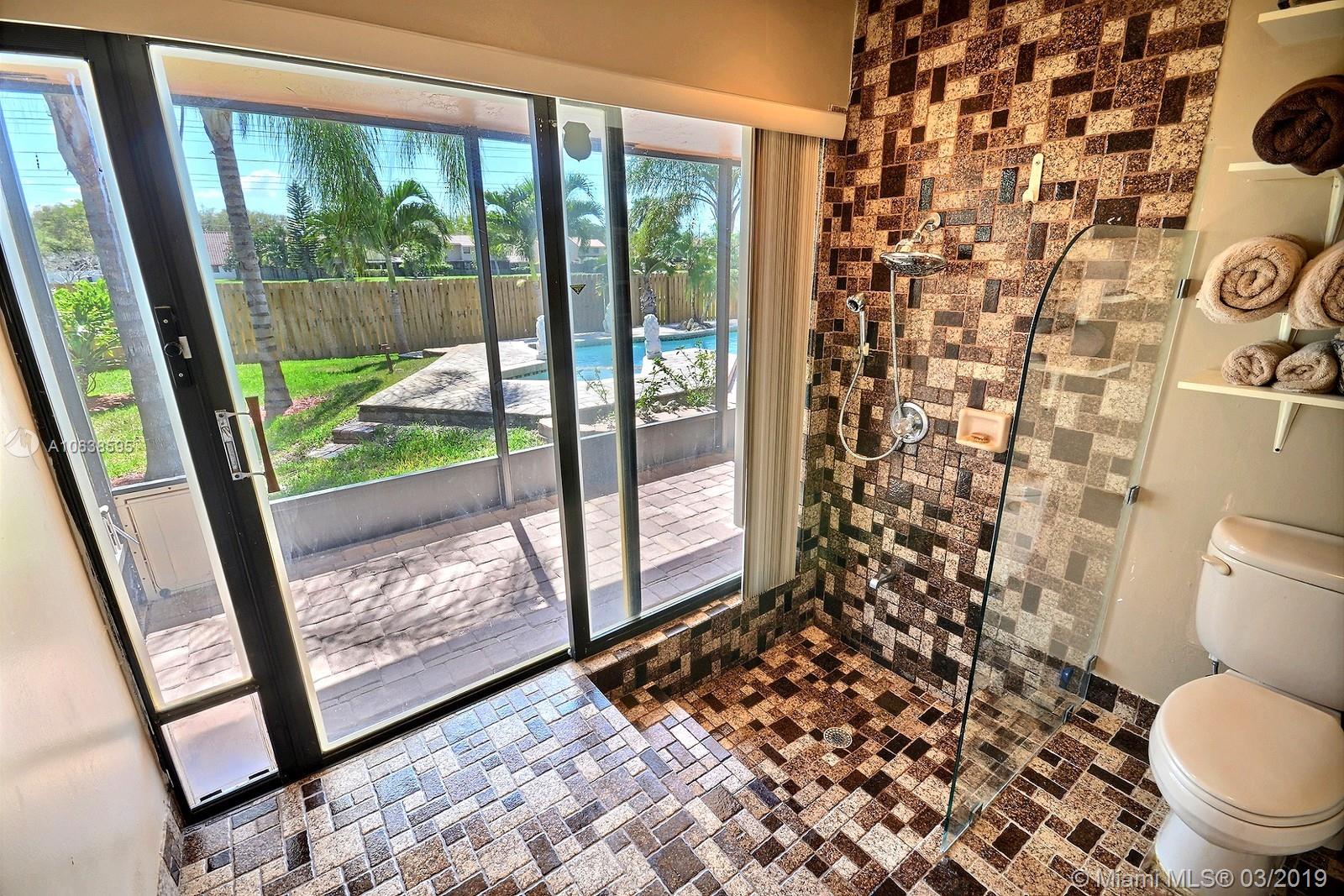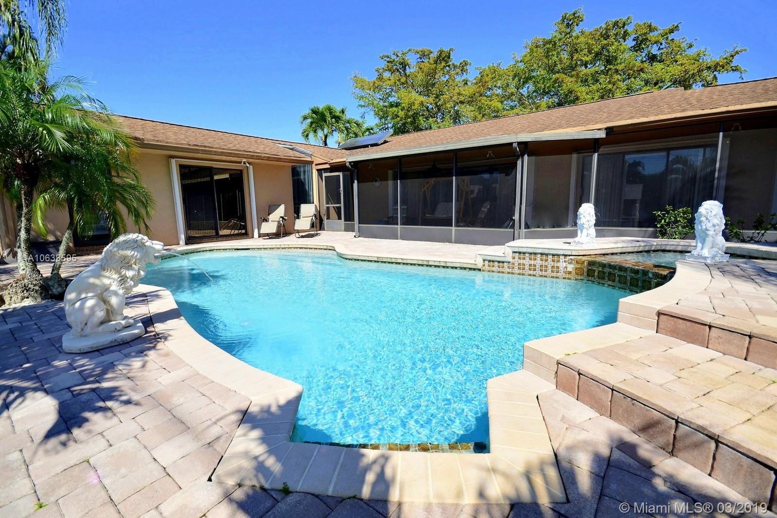 ONE OF A KIND ROCK CREEK 4 BEDS, 3 FULL BATHS POOL HOME ON AWESOME 10,000 SQ FT LOT W GORGEOUS LAKE VIEWS IN THE FRONT & GREEN BELT W WALKING TRAIL IN THE BACK. BEAUTIFUL CURB APPEAL, BRICK DRIVEWAY, CUSTOM HURRICANE IMPACT FRONT DOOR, LIVING, DINING & FAMILY ROOMS, HIGH CEILINGS. SPLIT FLOOR PLAN LAYOUT W FULL SUITE ON A SEPARATE WING OF THE HOUSE, PERFECT FOR IN LAW QUARTERS/GUEST ROOM. AMAZING BACKYARD W COVERED & SCREENED PATIO, REFRESHING POOL, OUTDOOR SHOWER, NEW FENCE ON METICULOUSLY KEPT YARD. HOA $150 PER QUARTER. PET FRIENDLY COMMUNITY. ROCK CREEK HAS A 2.75 MILE JOG/WALK PATH, PARKS, LAKES, SPORTS COURTS, TOT PLAYGROUNDS. POOL & TENNIS CENTER OFFERS 8 TENNIS COURTS, POOL, LIT B-BALL COURTS, FITNESS ROOM FOR A SMALL FEE. COOPER CITY'S SPECTACULAR SCHOOL SYSTEM TO BOOT.
