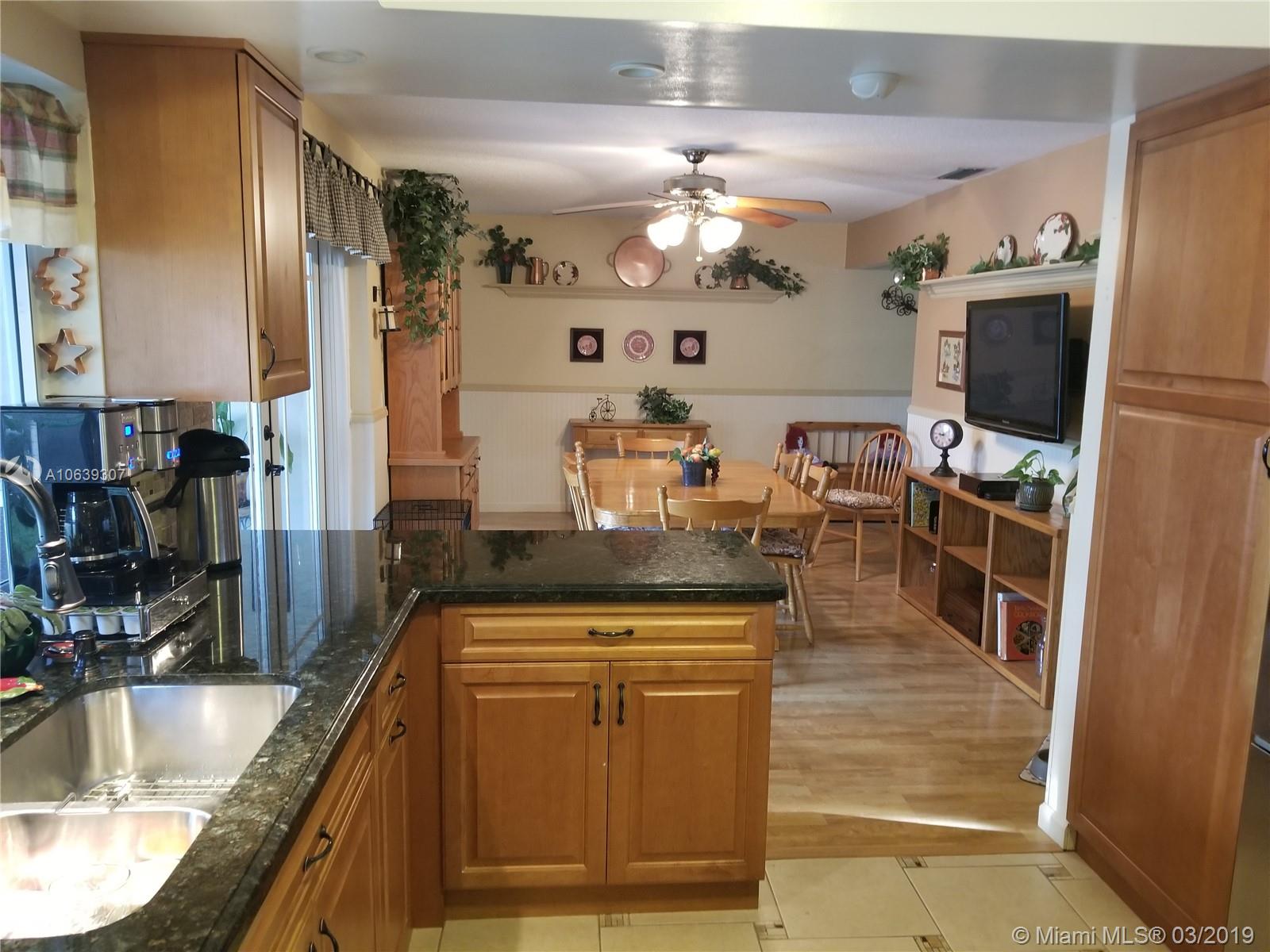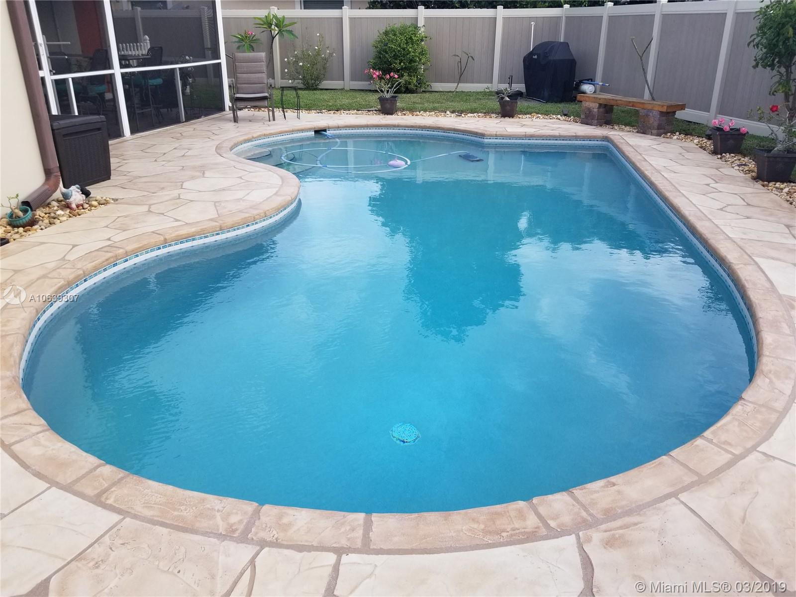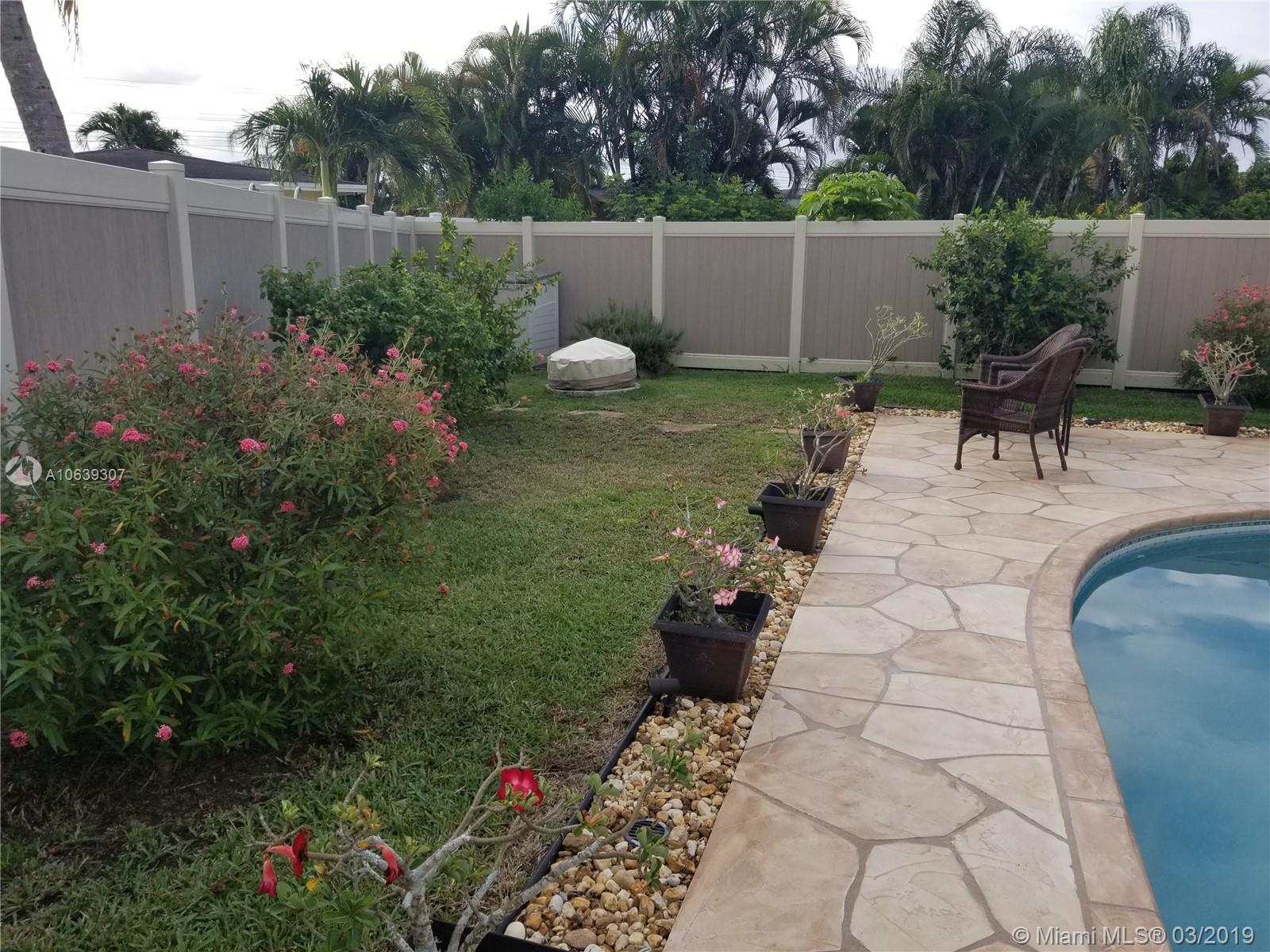 Close to shopping areas and schools. Totally upgraded with high impact windows and doors, yard vinyl fence, ceiling fans in all rooms, bedrooms have walk in closets, remodeled kitchen, granite counters with lots of storage, tankless water heater, screen patio w/refrigerator and cabinets, potting shed, grill pad, interior laundry room with extra cabinets, extra fridge in one car garage, pool just re-surfaced, landscaping throughout, large hallway closet for additional storage. MUST SEE, EXCELLENT CONDITION, SOLD AS-IS.