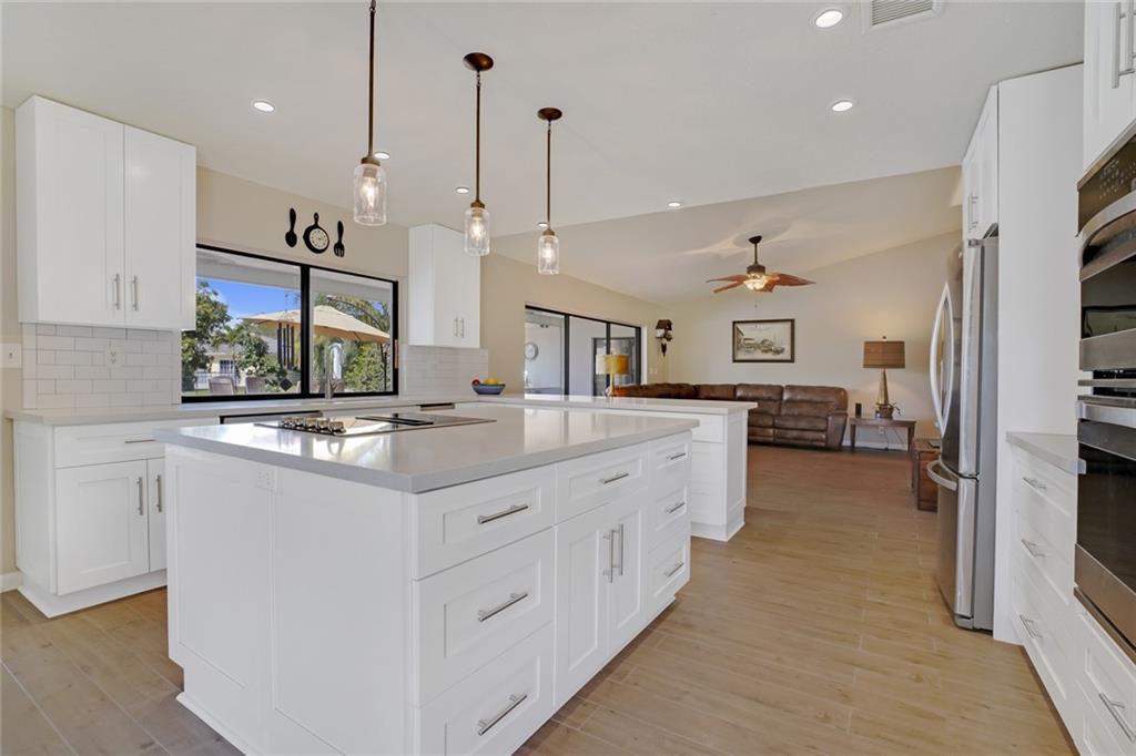 NO HOA! Beautiful oversized corner lot on a secluded street with no thru traffic. 1/3 acre lot featuring panoramic lake views, 24,000 free form pool, plenty of shade, avocado tree, butterfly and pineapple garden. Freshly remodeled tropical paradise: beautiful white shaker cabs w/soft close and pull outs, lazy susan, massive island with cooktop, more storage than you will ever need, newer high end s.s. appliances, quartz countertop, subway tile backsplash, led high hat lighting, new tile flooring, new paint, walk-in glass shower enclosure, double sinks, private patio off the master suite with hot tub and privacy wall. THE BEST NEIGHBORS PERIOD. All offers must be accompanied by a D.U. and be approved by my lender John @ prmg