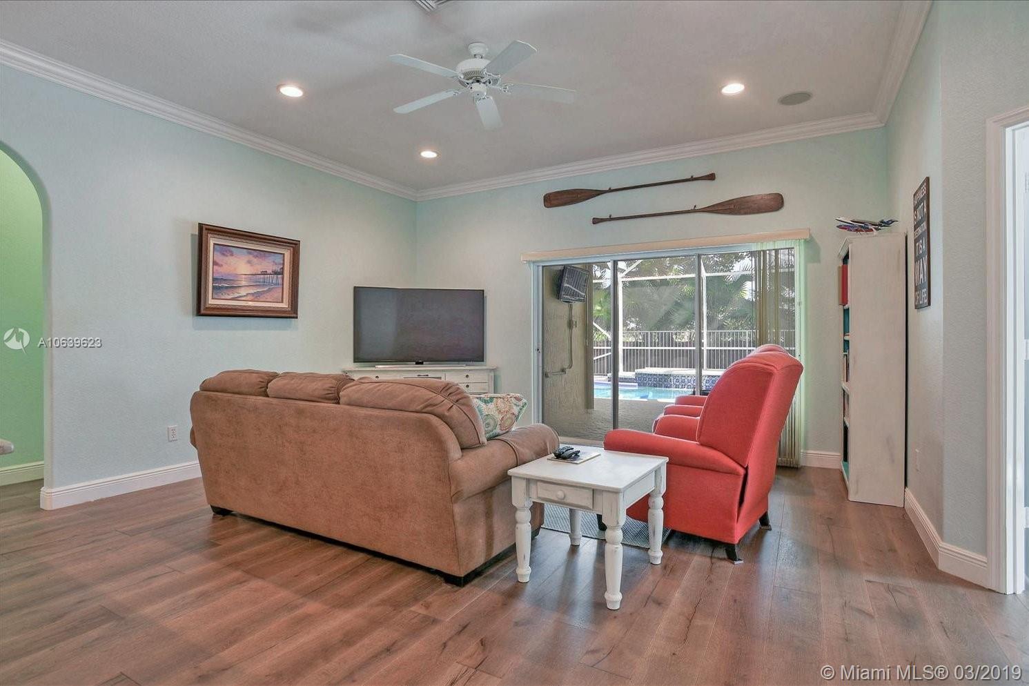 Make yourself at home in this 4 bed, 2 bath home w/ newly renovated kitchen and guest bath and wood flooring throughout. Granite countertops, stainless steel appliances, and more. Comfortable living spaces and flow throughout the home. Plantation shutters and window treatments. Built in office desk/bookshelf with copper counter top. Private and easy to maintain fully fenced back yard with landscape lighting. Newly painted exterior and screened in saltwater pool. Hurricane shutters and roll downs. Near excellent grade A schools, grocery, dining, medical and more. A lovely park at the entrance of the neighborhood, good for a peaceful walk or weekend get togethers. Easy access to I-75. Community pool, health center, lawn service, cable and gate included in HOA.