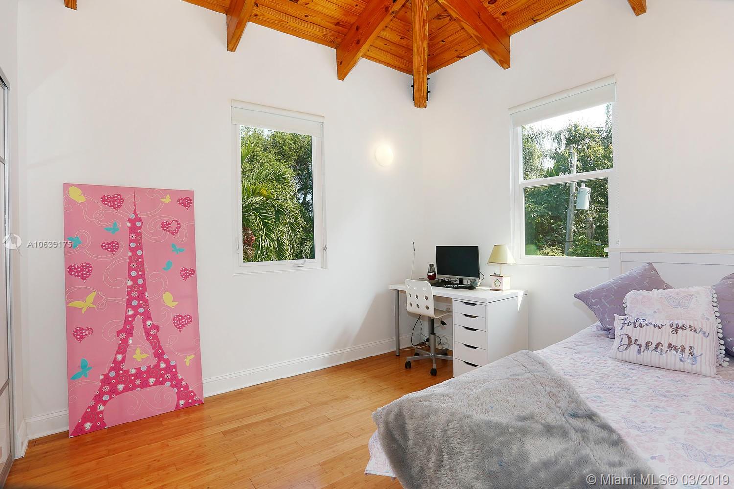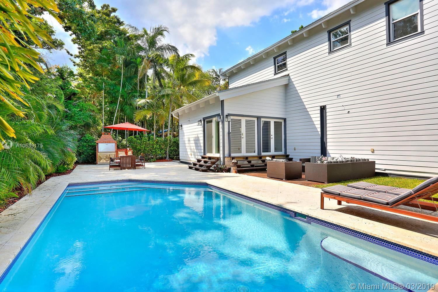 Lovely, magazine quality home in prime S.Grove neighborhood. Walk or bike to the village center’s galleries, boutiques, cafes and bayfront parks & marinas. Totally rebuilt & expanded in 2009 and a major renovation completed in 2017. Impact glass throughout. Light-filled, open living spaces with dramatic, vaulted wood-beamed ceilings & wood flooring. Stunning new custom kitchen features European cabinetry, stone countertops, Bosch appliances and expansive island w/ seating. Downstairs guest room and 2nd level: 3 BR’s + open loft area. Master suite features large walk-in closet and new spa-like bath w/ frameless glass shower. Enjoy year-round outdoor entertaining in the private garden w/ built-in grill & tranquil pool. Minutes to South Miami’s and Coral Gables world-class shopping & dining.