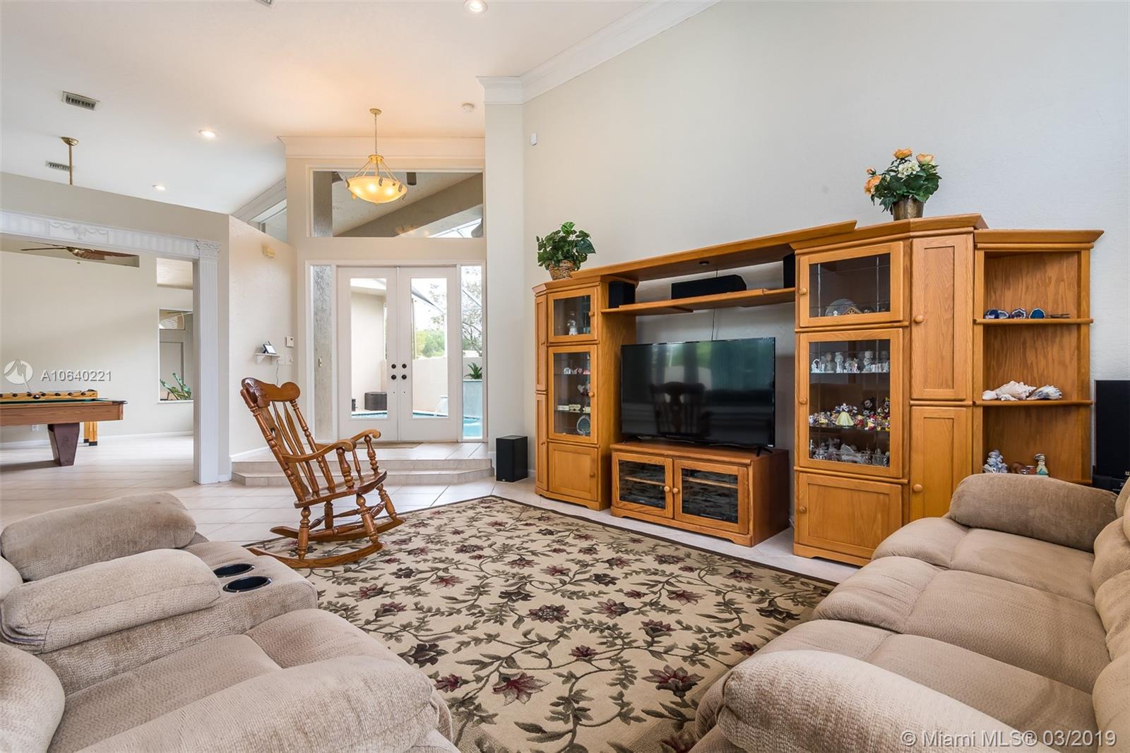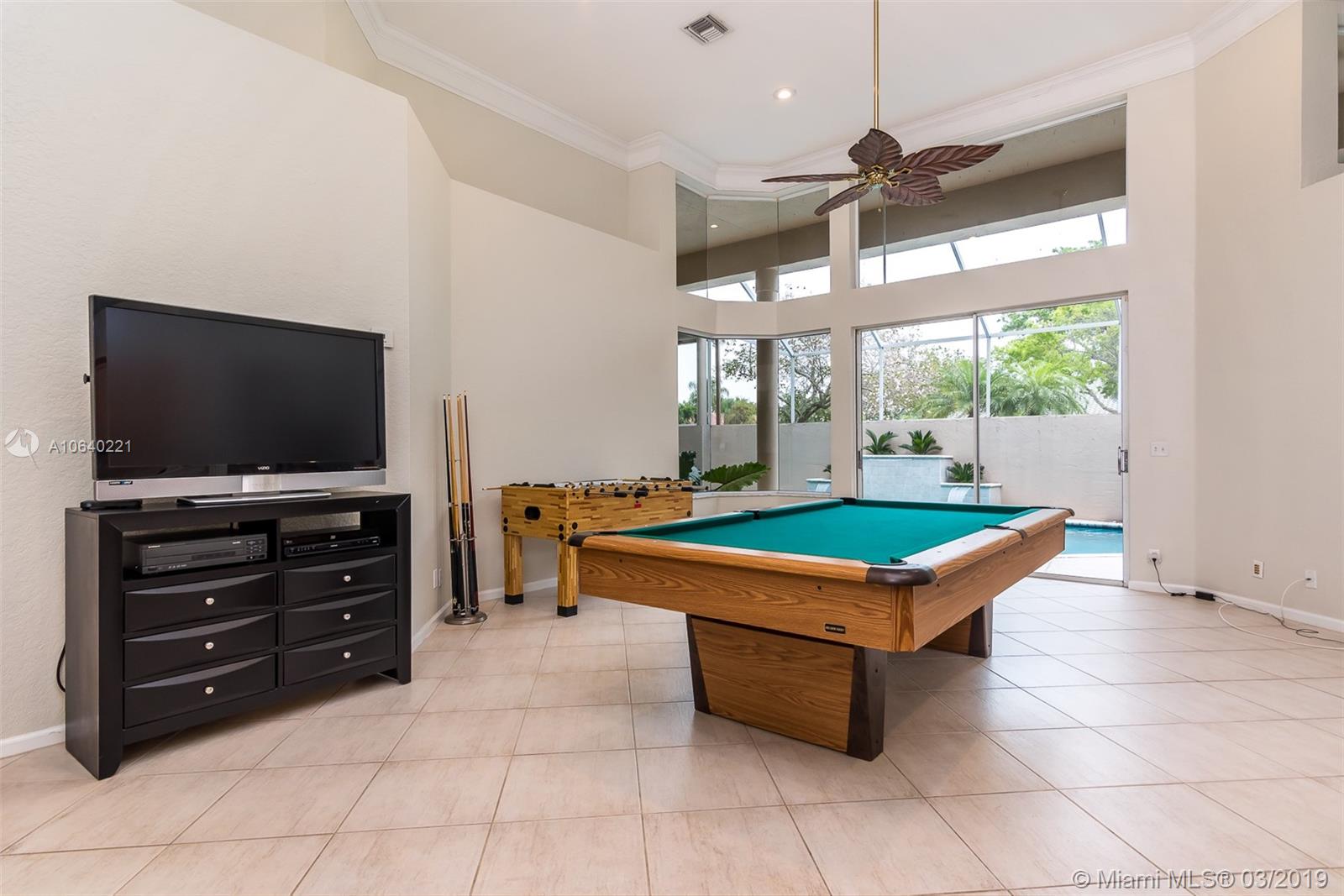 Welcome home! This 5 bed 3.5 bathroom with courtyard pool provides ample living space for a large family or entertaining and presents serene pool views throughout. 4/2.5 main home with a mother in law suite 1/1 makes it the dream home for a growing family. Ready for move in, 1 year old roof, this home’s interior was just repainted, the pool surface was redone, the showers have been re-sealed and painted. Accordion shutters for some windows and doors. 3 car garage allows for plenty of storage. Golf is optional not mandatory. Located in resort style community with golf and clubhouse, tennis, sports courts, playground, walking paths, and 24/7 manned gate house. A+ school district and close to many shops and major highways.