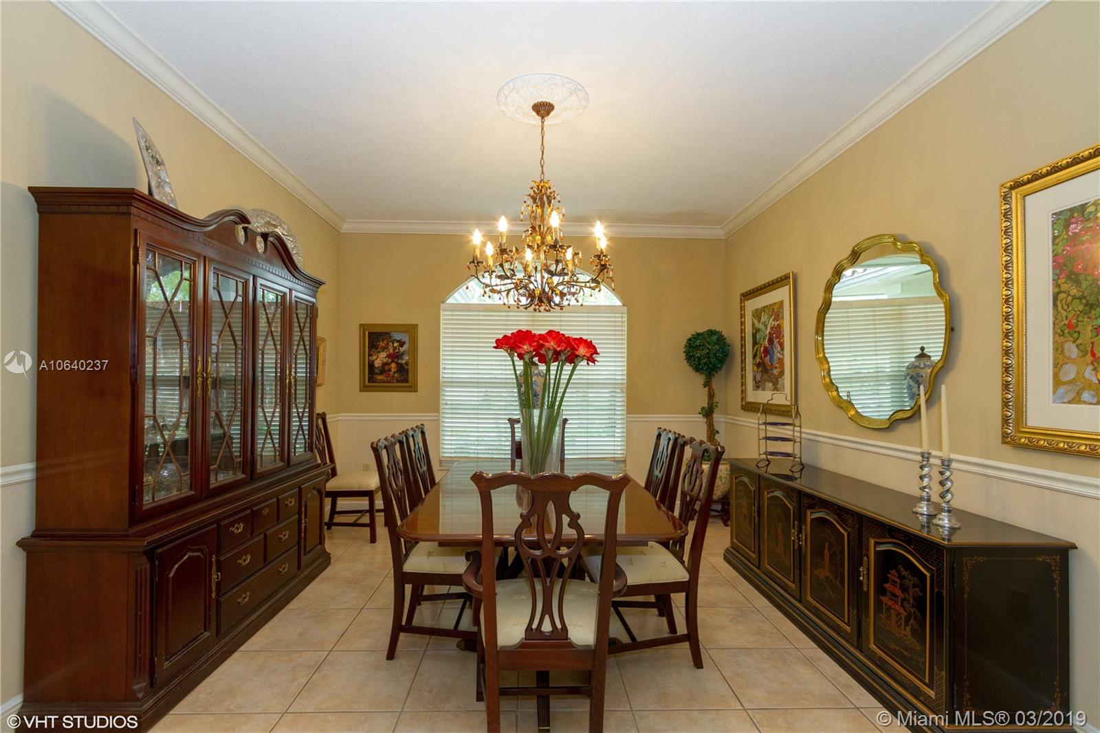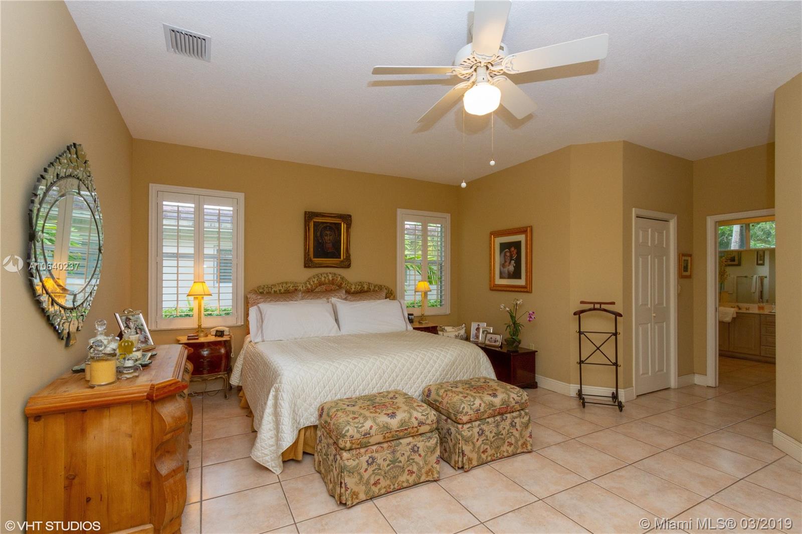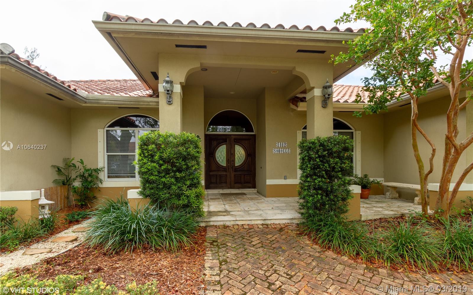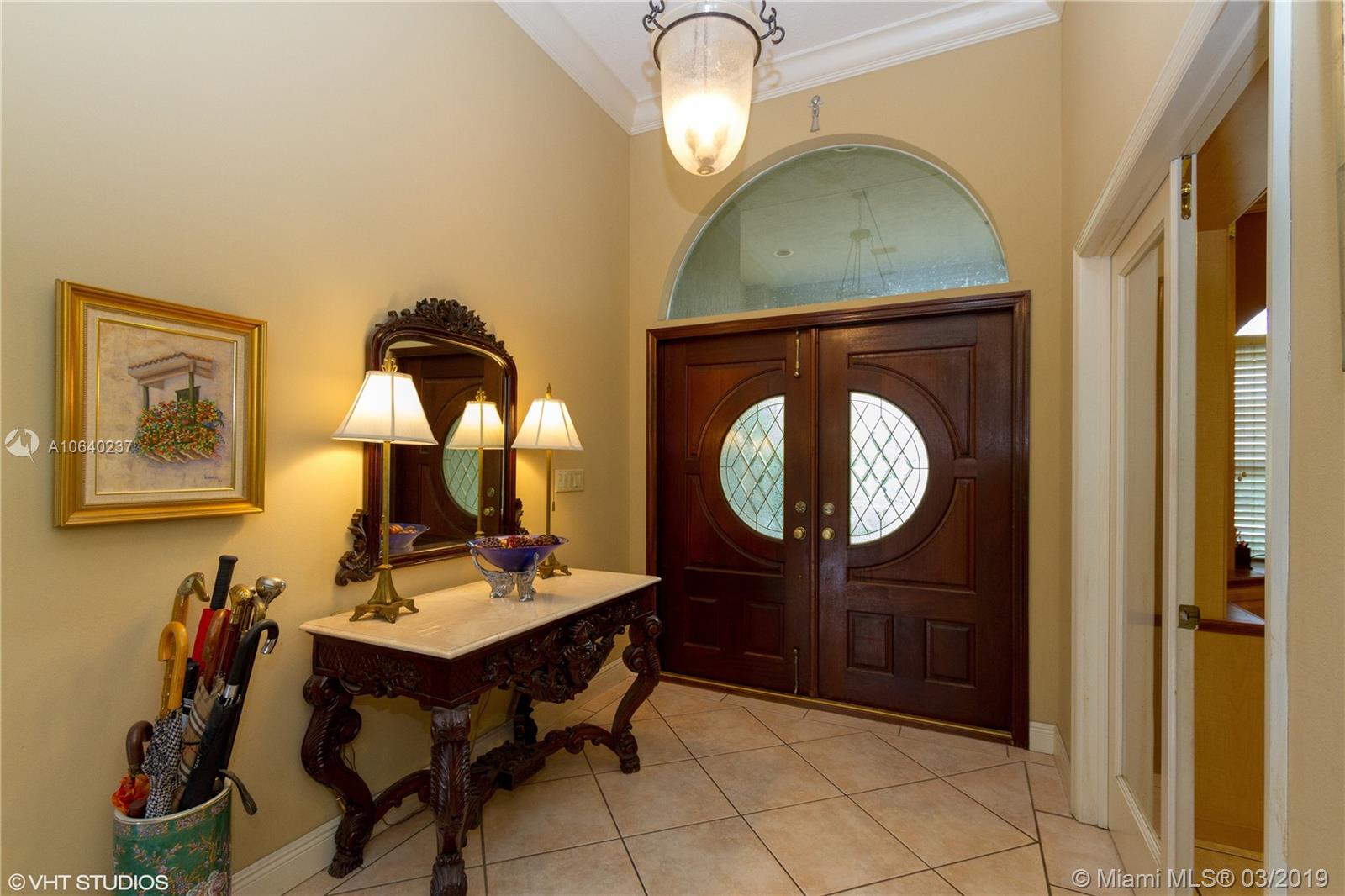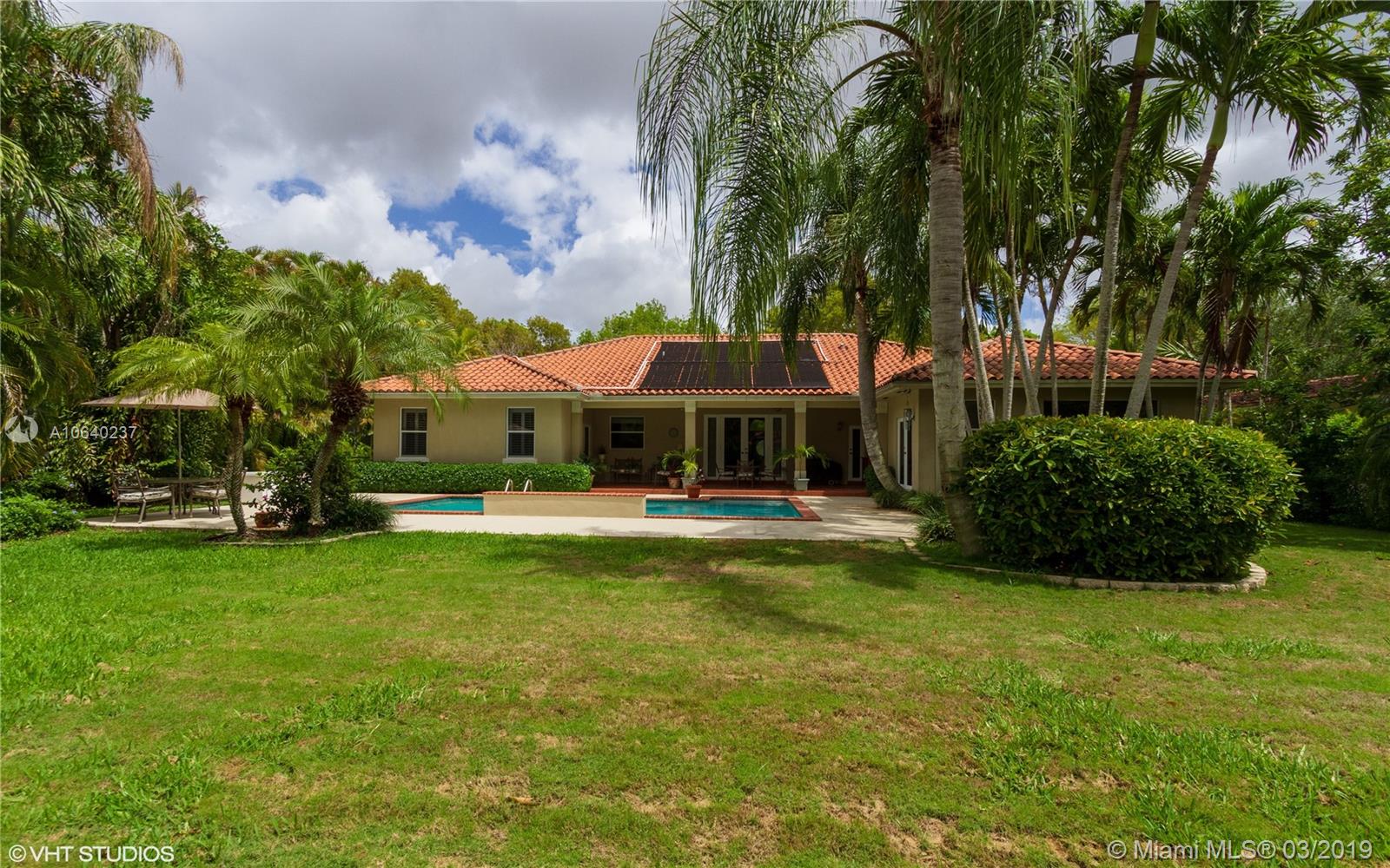 Fall in love with this elegant, contemporary home on a double, 15000 sf lot in North Gables. Built in 1999 and lovingly maintained by its current owners, this home is a must see. Through the double wood doors, enter the foyer & proceed to the formal living & dining rooms. The open-concept kitchen/family room lead to a spacious covered patio & cool-decked pool area that is perfect for entertaining. Two, under-5-year-old a/c units, two water heaters & pool solar panels enhance energy efficiency. The large master suite is graced by a sitting area, followed by the master bath & adjoining exercise room. One bedroom is used as an office/library & has a built-in desk & book shelves. The home also features high ceilings, 16X16 tiles throughout, a 2-car garage & a private, fenced-in back yard.