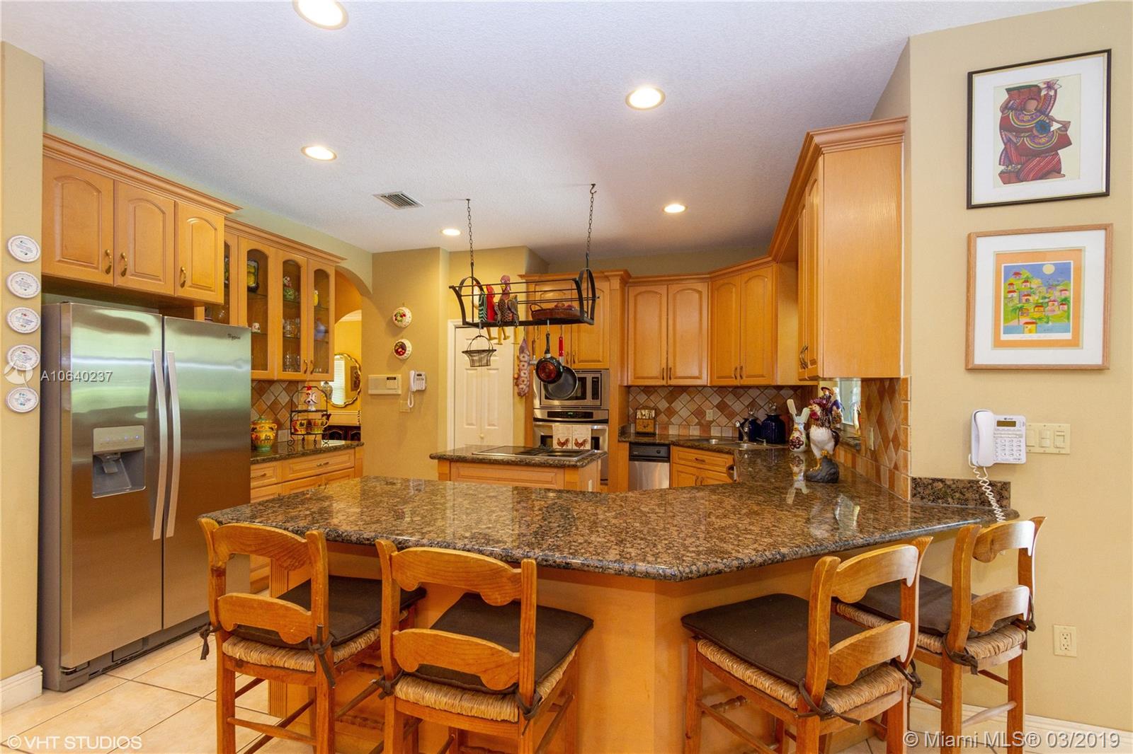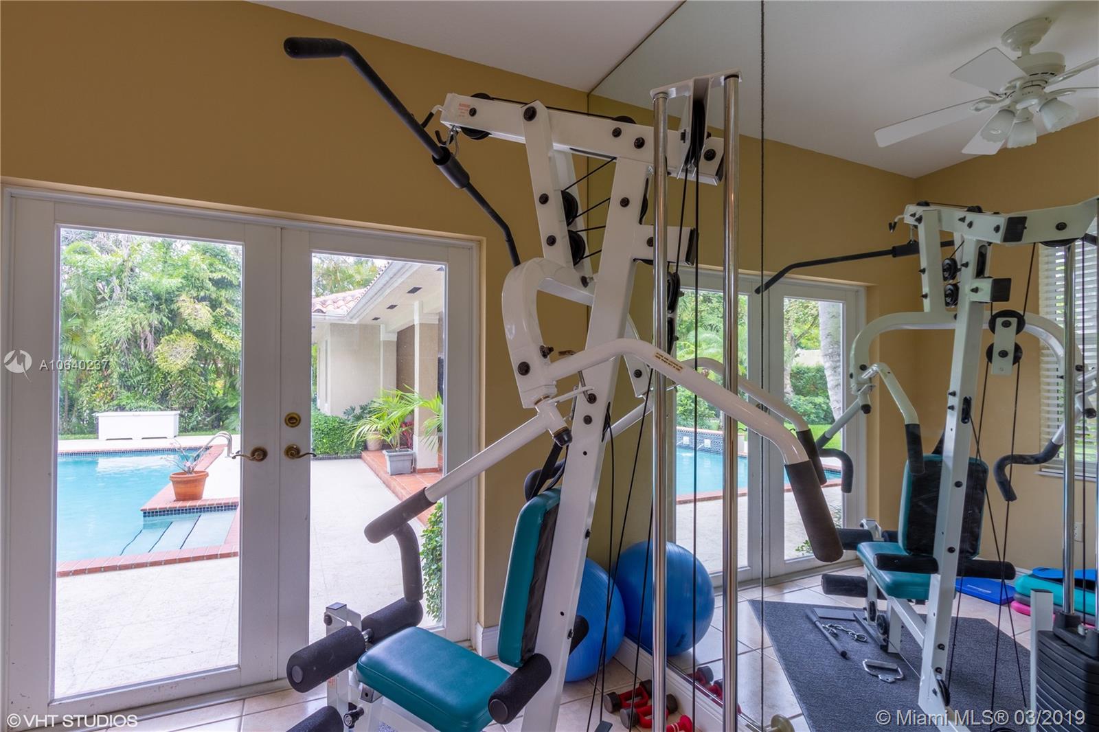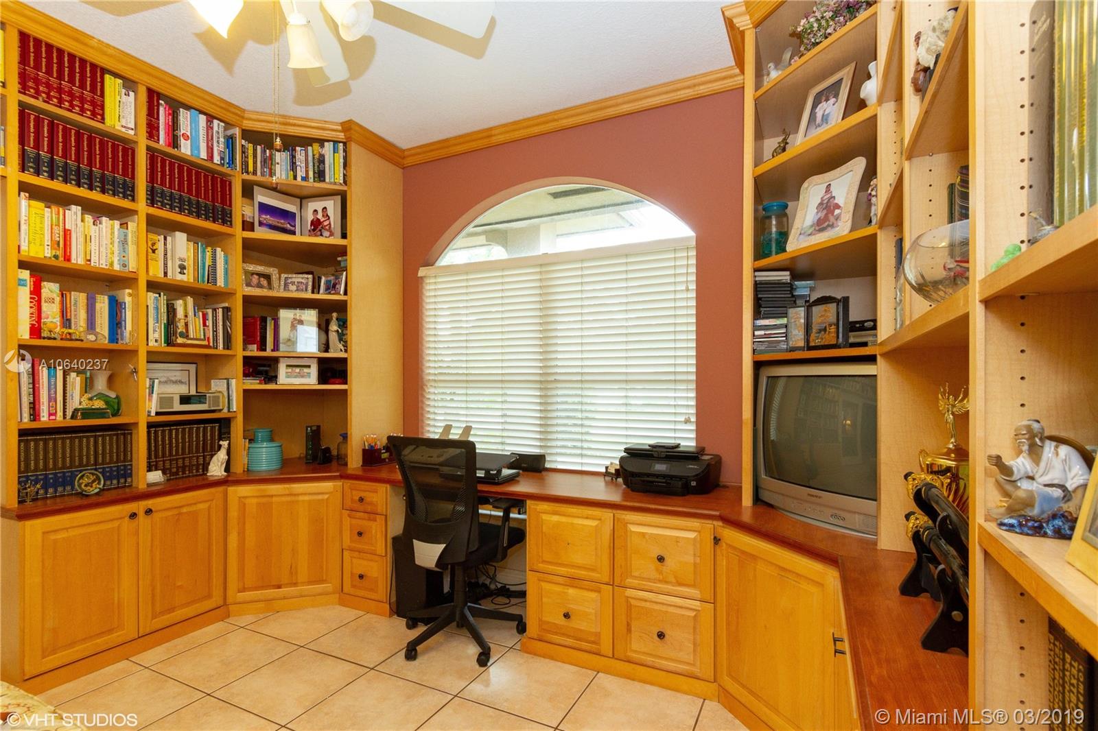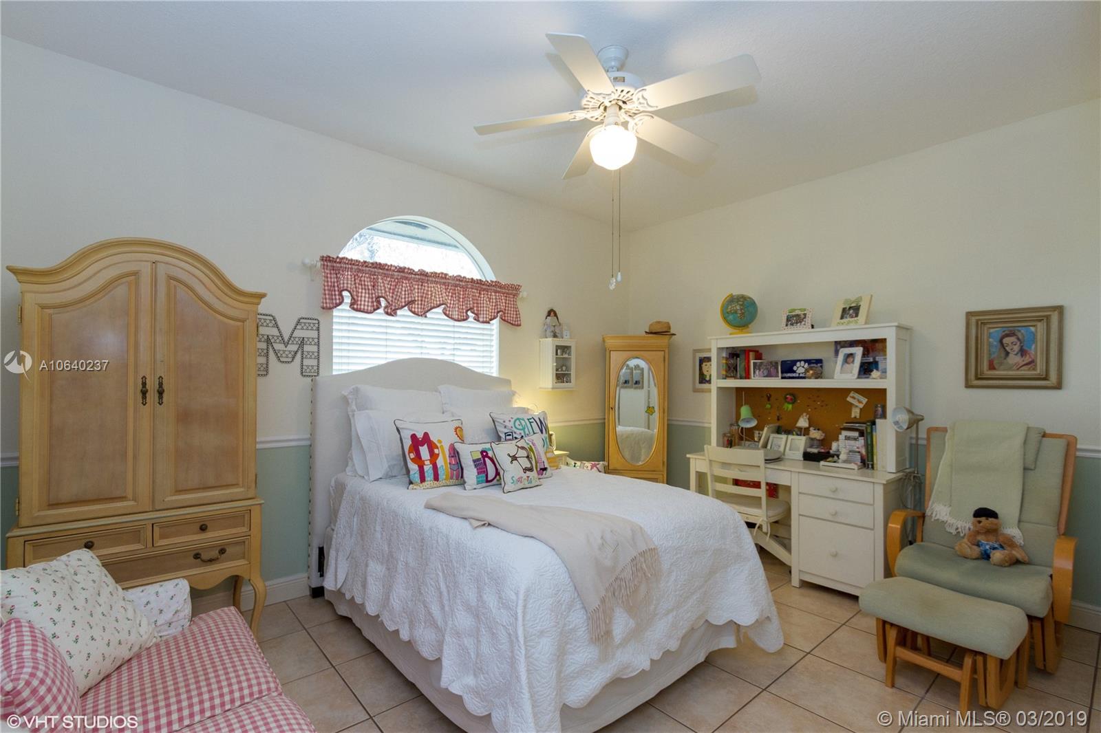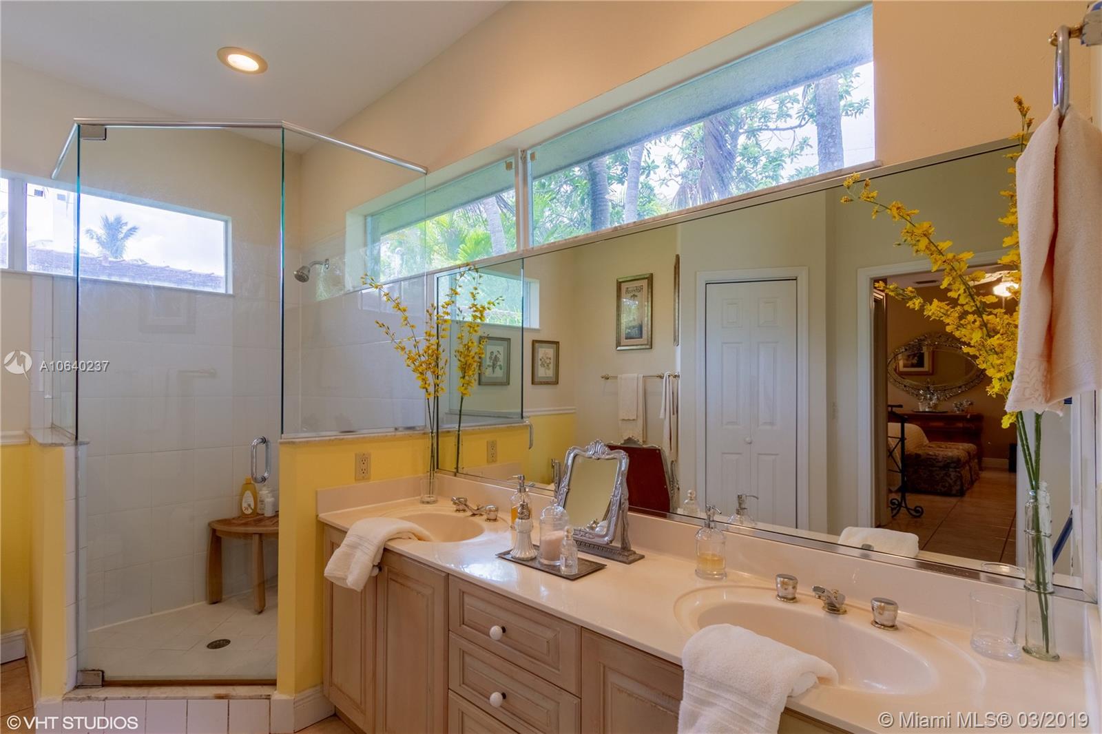 Fall in love with this elegant, contemporary home on a double, 15000 sf lot in North Gables. Built in 1999 and lovingly maintained by its current owners, this home is a must see. Through the double wood doors, enter the foyer & proceed to the formal living & dining rooms. The open-concept kitchen/family room lead to a spacious covered patio & cool-decked pool area that is perfect for entertaining. Two, under-5-year-old a/c units, two water heaters & pool solar panels enhance energy efficiency. The large master suite is graced by a sitting area, followed by the master bath & adjoining exercise room. One bedroom is used as an office/library & has a built-in desk & book shelves. The home also features high ceilings, 16X16 tiles throughout, a 2-car garage & a private, fenced-in back yard.