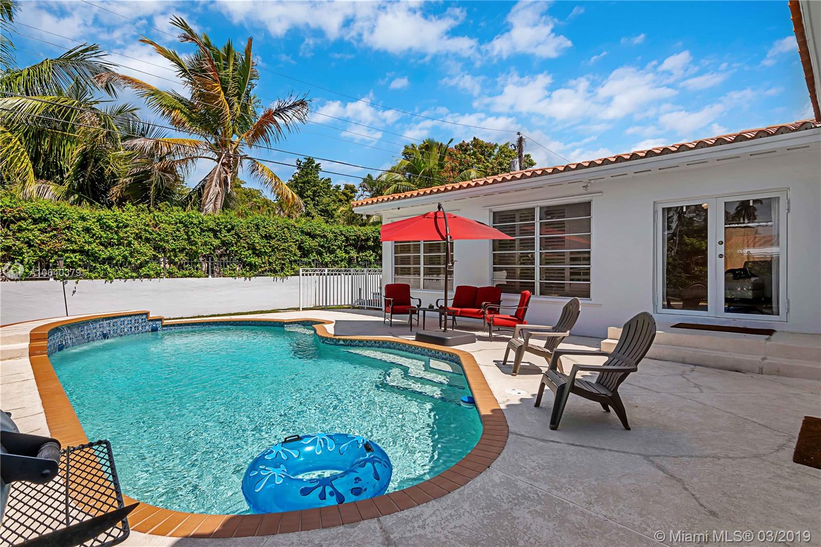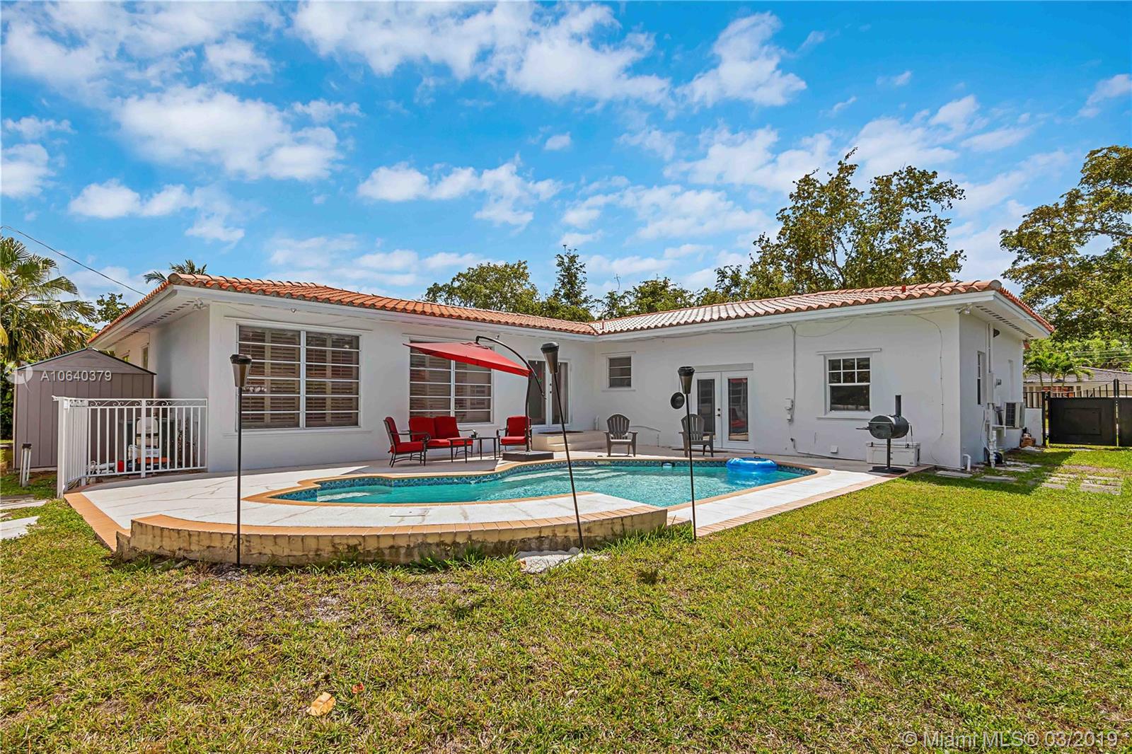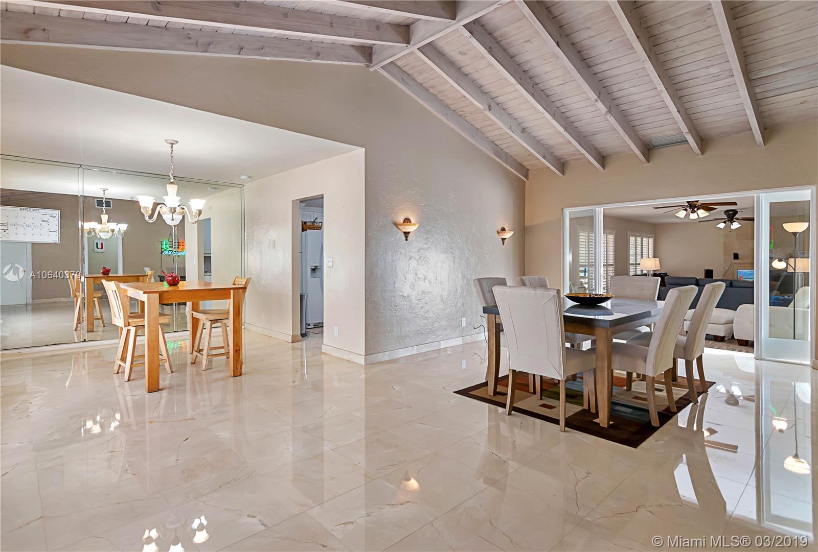 Beautiful blocked off street in Coral Gables with limited traffic, only one block from the University of Miami. You will feel at home in this 2,200+ sq. ft., 3 bed 2 bath pool home also close to the Shops at Sunset Place. Split floor plan with ample closet space. This home is open and bright with marble floors in the living area and wood in the bedrooms. There is an office space/mud room off the kitchen and a laundry room area. The kitchen is beautiful in white and the bathrooms are updated in neutral colors. You will fall in love with the Florida Pine Truss Ceiling and the pool is relaxing with a waterfall. The backyard and side gates allow for easy in and out for a small boat for those so inclined. Move in ready but with ample opportunity to upgrade and expand if one so desires.