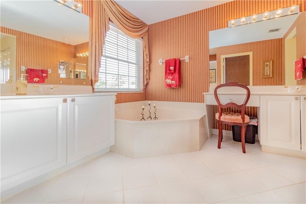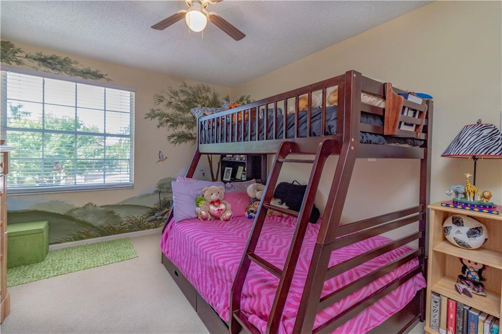 Impeccable former model home! Beautiful real hardwood floors on the lower level. Large kitchen with tons of cabinets, snack bar and breakfast area. All four bedrooms are on the upper level. Master features his and her upgraded California closets. Large master bath with two vanities, separate shower and large tub. Peaceful backyard on the lake, with a deck that is perfect for entertaining.