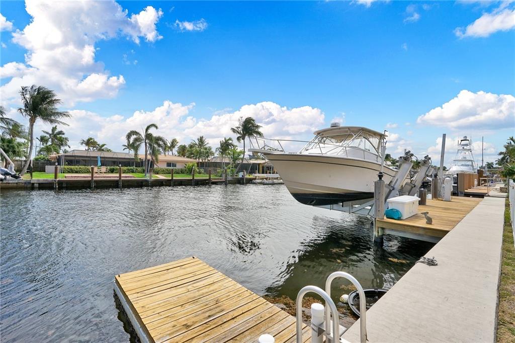 SECONDS TO THE INTRACOASTAL, MINUTES TO THE HILLSBORO INLET & ATLANTIC OCEAN for HOURS of recreation in your boat from your backyard! This home is on a"NO FIXED BRIDGE" & extra WIDE CANAL-LIVE the LIFESTYLE you've DREAMT ABOUT-FISHING, BOATING, DIVING,SIGHTSEEING..DO IT ALL! 80' SEAWALL &DOCK w/30 amp power & H2O. 20,000 lb BOAT LIFT, FLOATING DOCK & Jet Ski LIFT. Outside shower & scuba tank/dog washing station. Home offers a split floor plan w/private master, cabana bath w/ double vanity sinks & lg shower. LG living rm opens to a bright & sunny (all windows & separate A/C)Fla Rm. Newer kitchen w/white to ceiling cabinets, SS appliances(4 door fridge & DOUBLE oven) & granite counters. Cabinets,sink & bev fridge line the wall of the dining room. Beautiful home on a great deepwater canal.