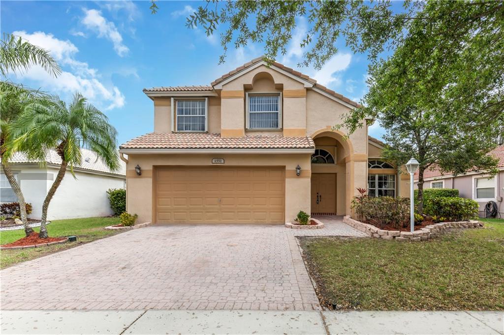Bright, immaculate, and inviting freshly painted Malibu model with wide lake views. Features include: volume ceilings, gas stove and water heater that save on electricity, accordion shutters. Huge backyard has plenty of room for a pool. Master bedroom downstairs. Maintenance fee includes basic cable, internet, and alarm. Vibrant club house with banquet room, exercise room, resort style heated pool, jacuzzi, eight tennis courts and tons of classes. Four manned guard gated entrances for easy access from many different roads. Minutes to shopping and malls. Sprinklers fed by lake water.