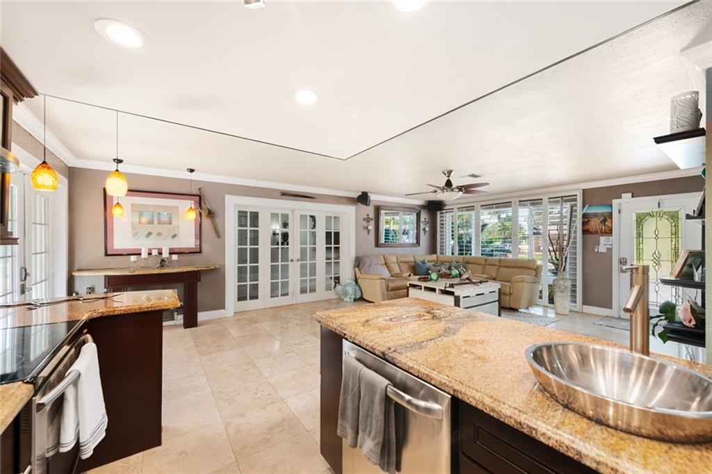 Come see this well-maintained home east of Federal Hwy. in desirable Pompano Beach! Three bedrooms, three baths plus a den for added bonus. Home is tastefully updated. Kitchen has granite countertops, recent appliances and open floor plan to living room. Finished laundry room under a/c. Enjoy entertaining in your large fenced in backyard including a screened patio and shed for extra storage. Impact windows; upgraded exterior/interior electrical panel; hardwired for security and smoke detection. Plenty of parking for your cars and boat! Close to boat ramps, beaches, golf course, shopping and restaurants.