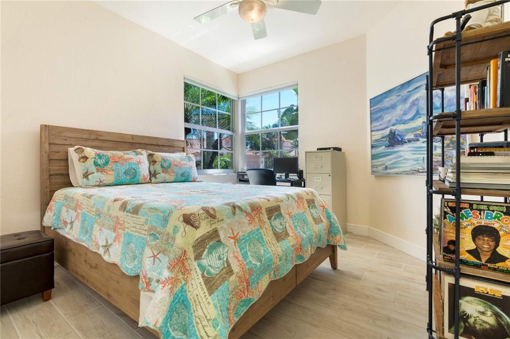 This two-story gorgeous home has 4 bedrooms with 3.5 bathroom including the master bedroom on the 1st floor and one bedroom with loft upstair. The home is has beautiful crown molding, tile, granite kitchen counters and with extensive interior designer renovation, this gorgeous home flows perfectly and draws you to the casual living areas. The walls of glass invite you to the outdoors to see the splendor of the back yard with lovely wrap-around logia and water views. Master suite and handsome office to the left and 3 guest bedrooms to the right. Finest quality millwork, craftsmanship, wide crown moldings, 13-15 foot ceilings, tile floors throughout are a few of its features. This home is also handicapped accessible. Impact windows, doors, garage door and a permanent underground generator.