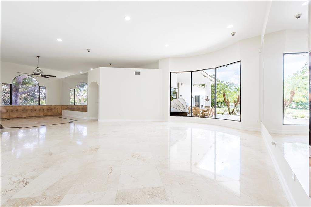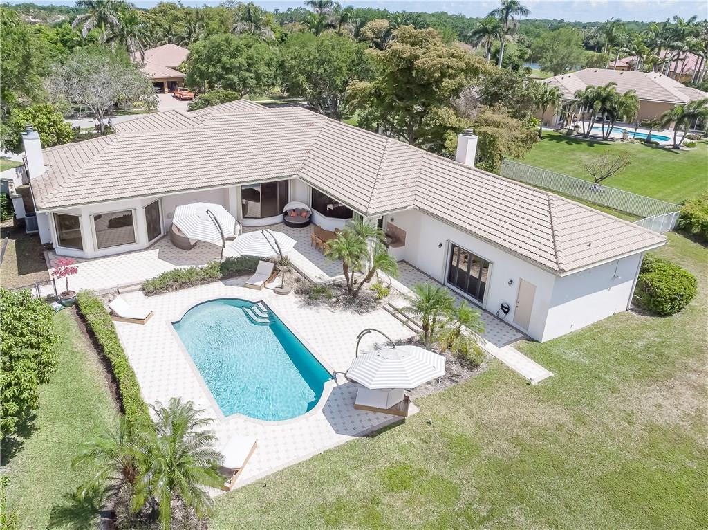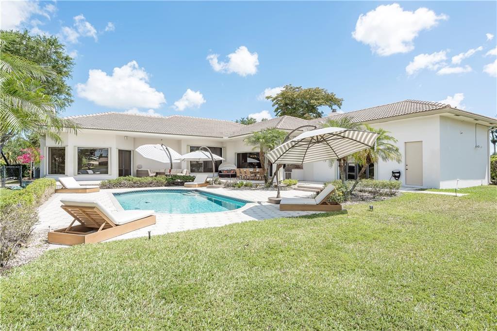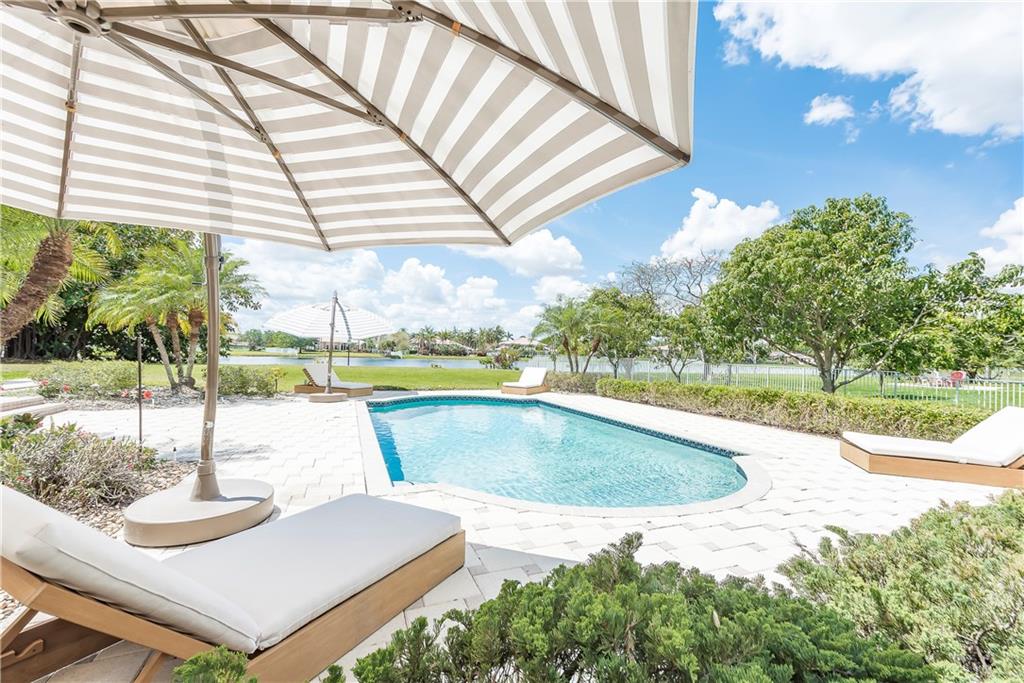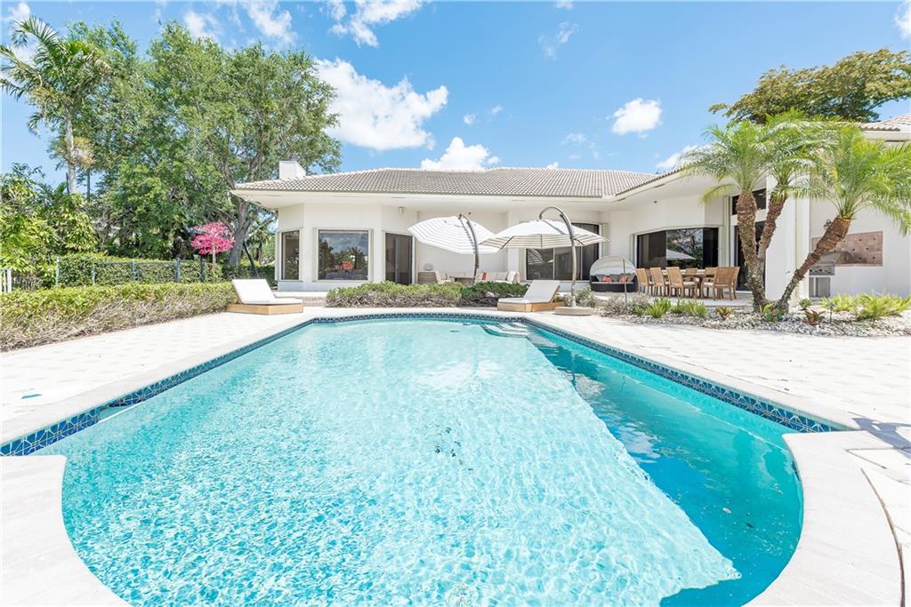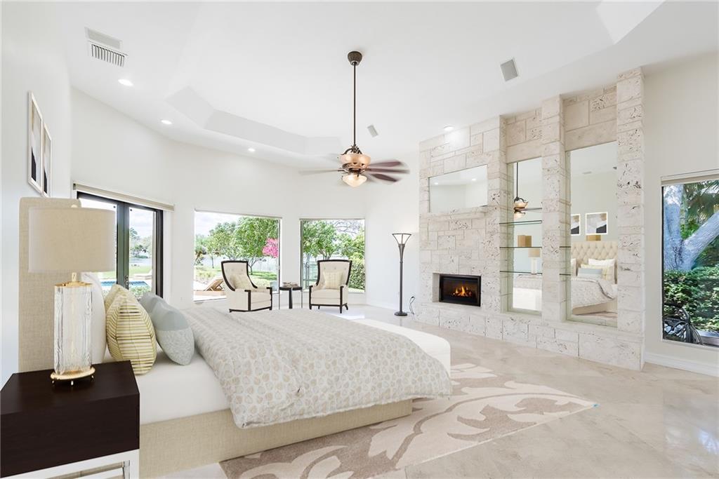 Estate living at its finest! One story waterfront residence in a private gated community! Enjoy seamless glass windows creating sun filled rooms to capture beautiful large pool & water views. Great for entertaining featuring a NEW gourmet chef's kitchen--Carrera Quartz, SubZero and Decor appliances, formal living room/dining room, large master suite with fireplace, grand media room IDEAL FOR PROFESSIONAL HOME THEATER, family room with fireplace, custom office with natural hard wood floors, safe room, temperature controlled three car garage, expansive covered lanai.