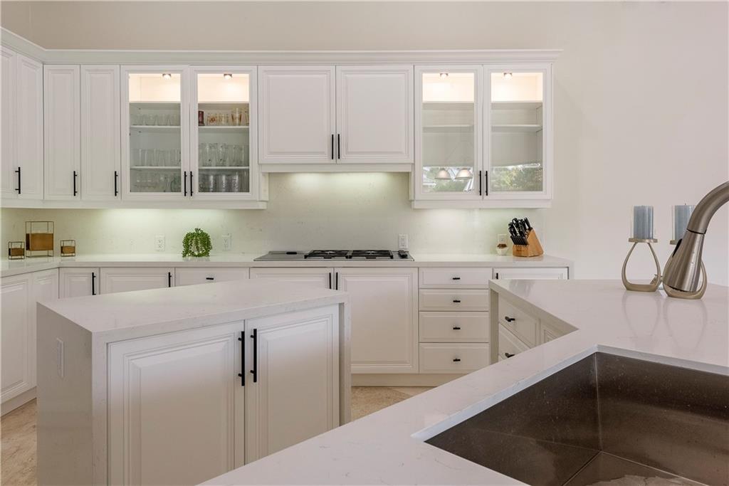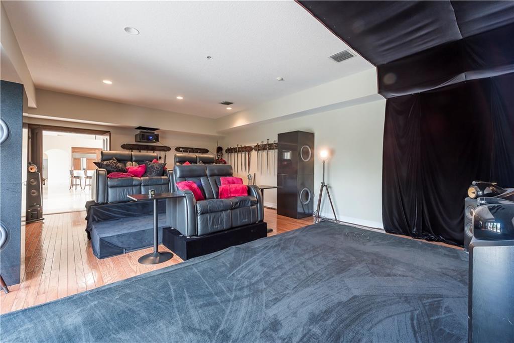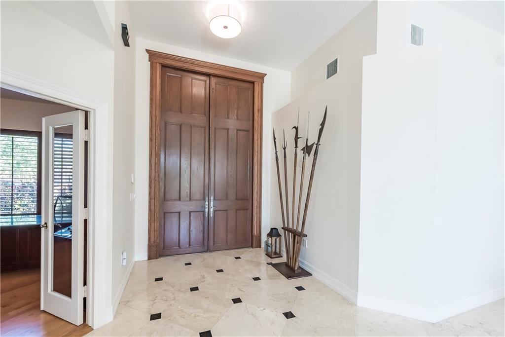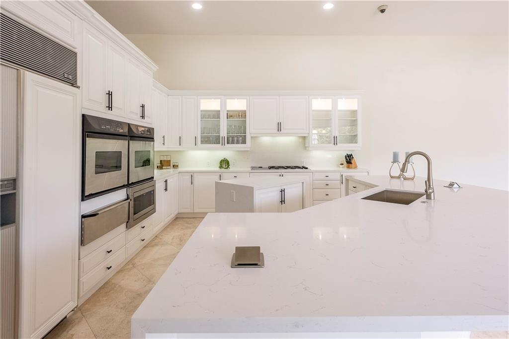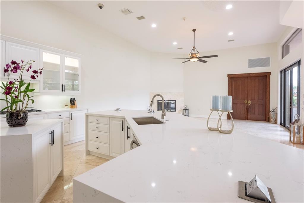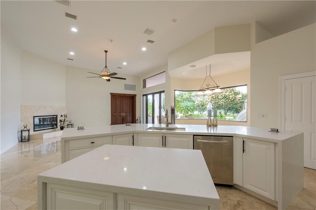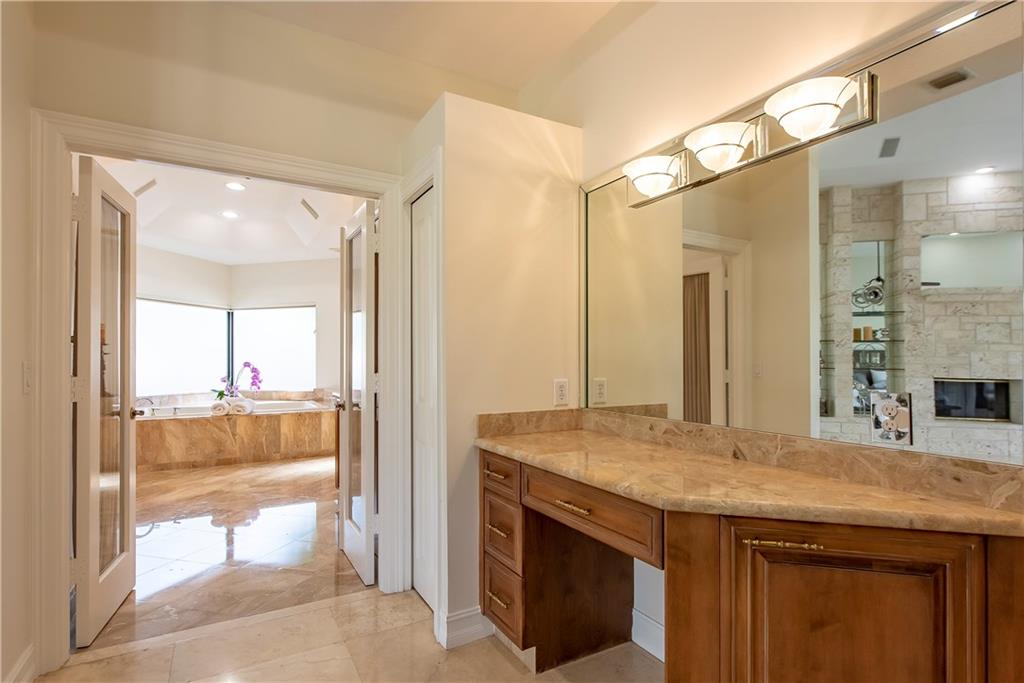 Estate living at its finest! One story waterfront residence in a private gated community! Enjoy seamless glass windows creating sun filled rooms to capture beautiful large pool & water views. Great for entertaining featuring a NEW gourmet chef's kitchen--Carrera Quartz, SubZero and Decor appliances, formal living room/dining room, large master suite with fireplace, grand media room IDEAL FOR PROFESSIONAL HOME THEATER, family room with fireplace, custom office with natural hard wood floors, safe room, temperature controlled three car garage, expansive covered lanai.