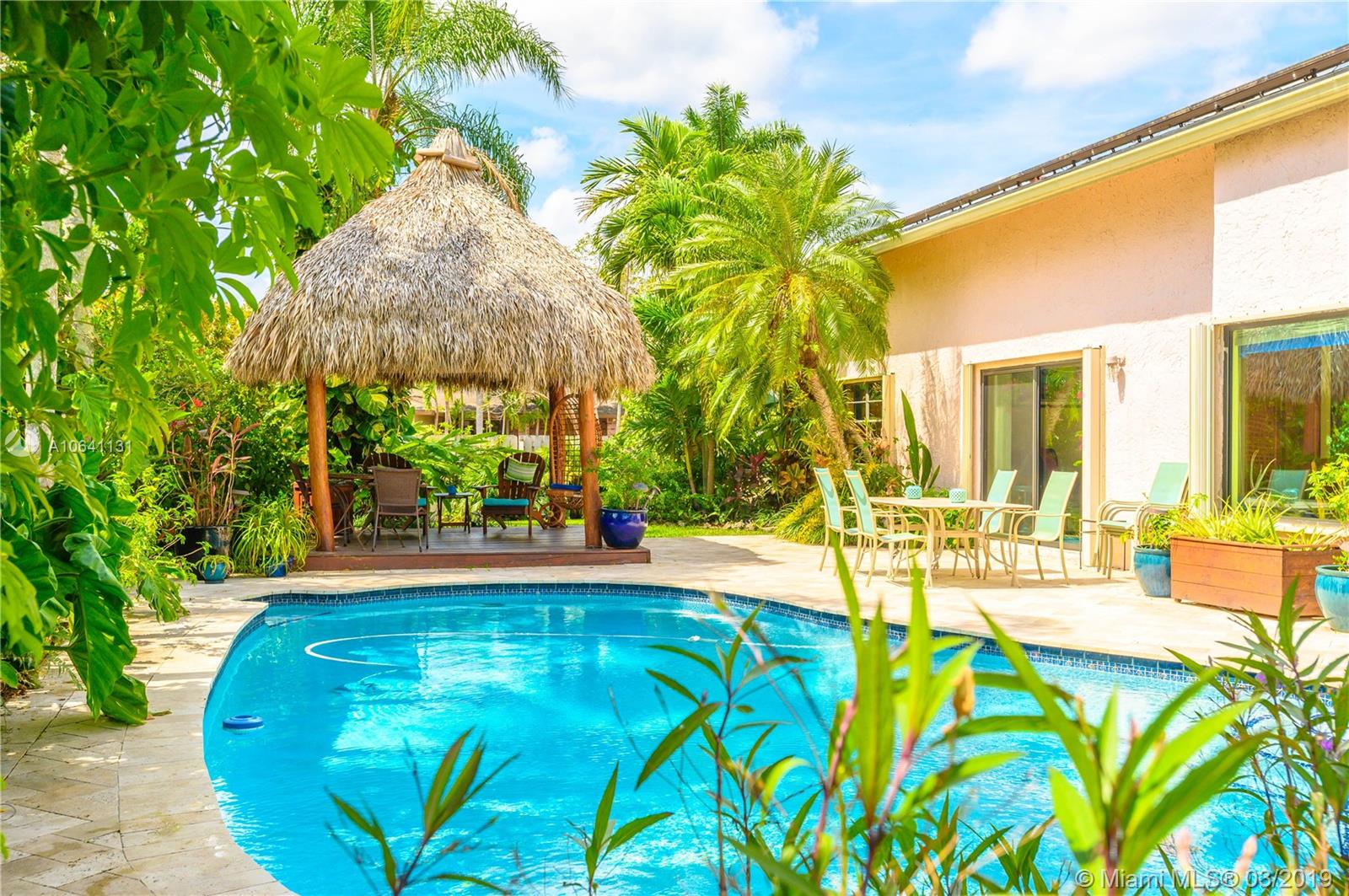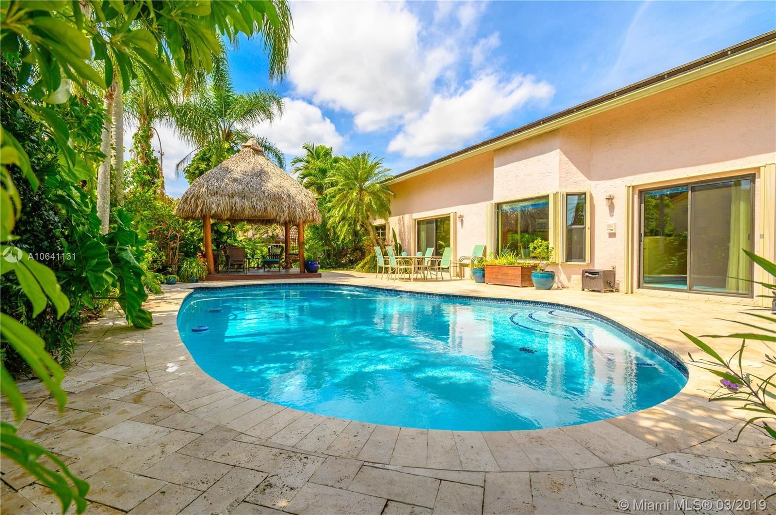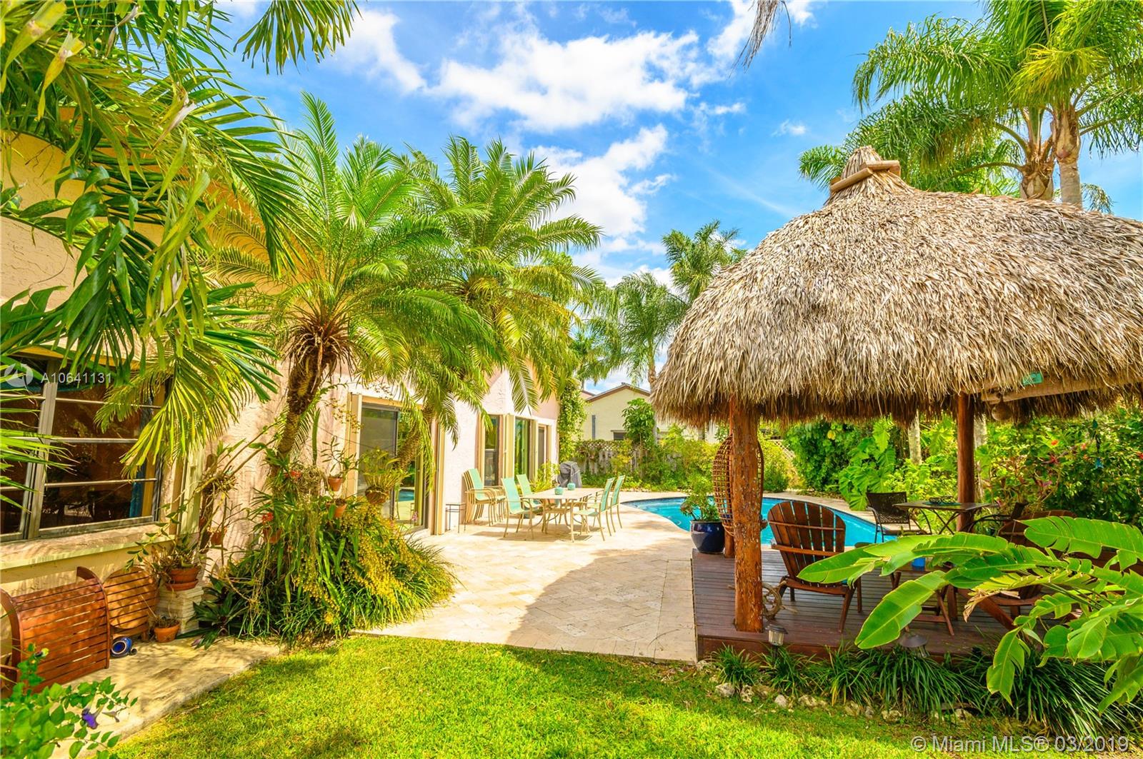A Shenandoah Gem! Nestled in the sought after neighborhood on a quiet cul-de-sac, this Splendid vast corner lot is a 2 story home with vaulted ceilings and large kitchen will not last! Large Master bedroom conveniently located on the ground floor, with 2 Bedrooms and Additional Loft Bedroom/Den upstairs makes this a stirring home for any buyer. The backyard is a magical oasis with mature tropical garden, sparkling pool and paved patio with an alluring Summer Chickee Hut. Tons of updates -Solar Panels, New AC, New Diamond Brite Pool Resurfacing plus More! Don't miss out, see it now!
