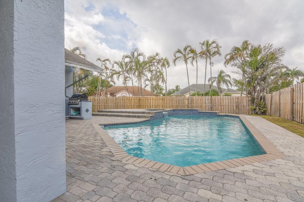 MOVE IN READY - Extremely Well Maintained, Nicely Landscaped, Spacious 4/3 Split Open Floor Plan Pool Home in the Desirable, Quiet New Providence Neighborhood. Vaulted Ceilings in Living Areas - Plantation Shutters Cover Sliders in Extra Large Living / Dining Area - Hardwood Cherry Cabinets & Granite Counters in Kitchen - Great Lighting with Many LED Hi Hats - Master has Walk in Closet & Duel Sinks - Sliders Throughout Lead To Patio That's Ready for Relaxing or Entertaining: Pool with Spill Over Spa Jacuzzi, Outdoor Kitchen & Private Fenced Backyard - Close to Parks, Shopping & Highways - Very Low HOA - Excellence in Learning with A+ Rated Schools - MUST COME SEE!