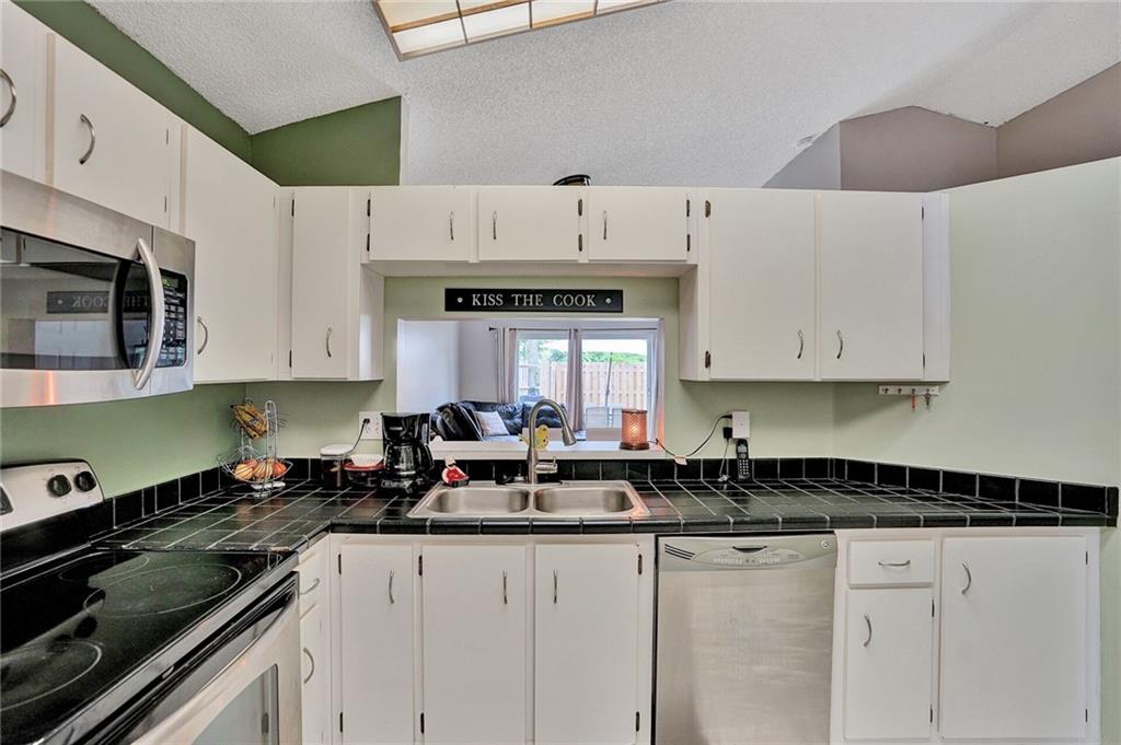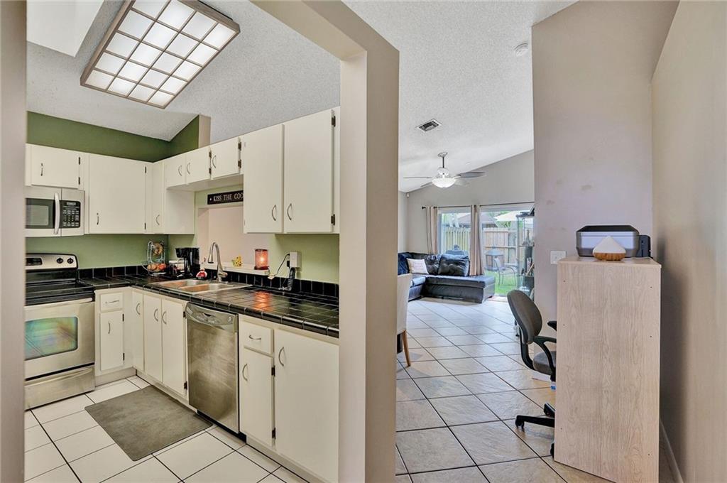 Unbelievable find! A 3 bedroom single family home with fenced yard! Nice foyer entry. Ceramic tile throughout. Vaulted ceilings. Large eat in kitchen with pantry and newer stainless steel appliances. Newer Washer and Dryer. Split bedroom plan. Beautiful fenced back yard and butterfly garden. New shed. Great for extra storage. Alarm system. Garage is partially converted for extra office or den. Hurry before it's gone.