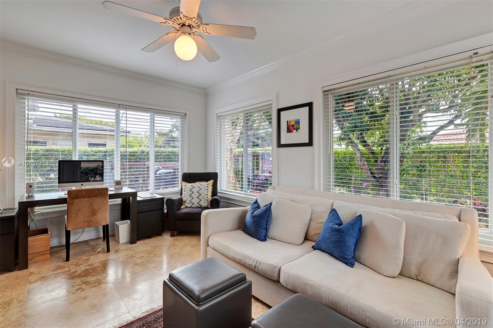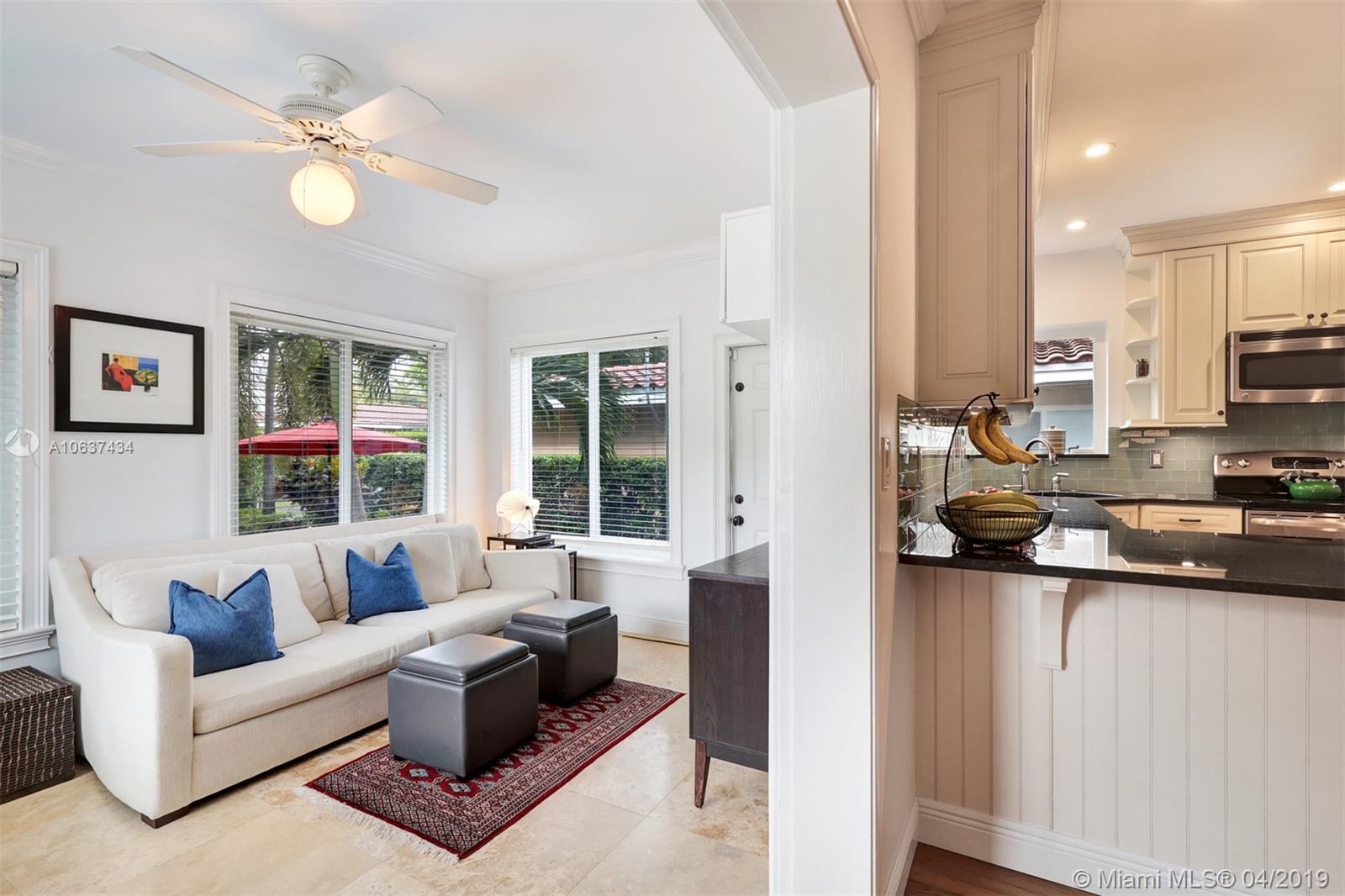 Come home to this beautiful, remodeled Coral Gables home 4 blocks from Miracle Mile's trendy dining, shopping and entertainment. Urban oasis with a lush, private backyard for entertaining. Mature trees provide shade throughout the year. Stunning original wood flooring, remodeled kitchen and bathroom, and top of the line PGT impact windows with low-e glass to block heat. Bright and airy Florida Room. Connected to municipal sewer( no Septic tank). Mapped to excellent public schools. Please look at conceptual plans under attachments which could be further developed to get a permit.