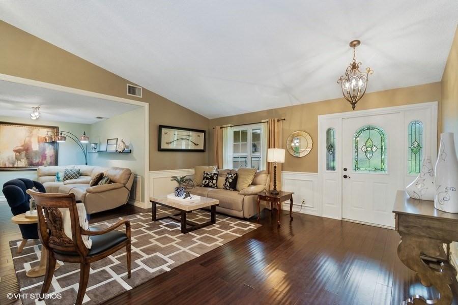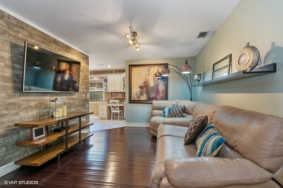 Beautifully updated home in highly sought after Pine Ridge! Upgrades include a newer roof, all new high impact windows and doors. Fully fenced and expanded pool area with a fantastic custom outdoor bar. Interior features a remodeled kitchen with very nice granite counter tops. Bamboo wood floors throughout living area, New textured ceilings throughout home! Gorgeous guest bathroom, Wood look tile in two of the bedrooms. Custom closets, raised panel doors and much more. Short walk to park, and Coral Park elementary school. Shops, restaurants and expressway all close by. Low HOA. Fantastic family oriented community! Absolute best value! Call for your private viewing today!