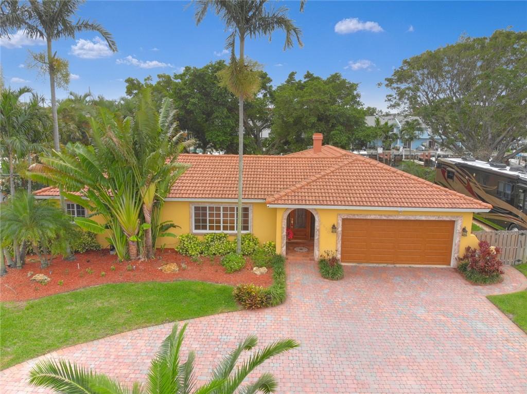 Rare opportunity to own this Huge property(.40 acres- 104' x 170' deep) with 104' on the wide Caliban Canal! Beautiful home with 4 bedrooms, 2 baths and 2 car garage with a natural gas heated and salt pool( plus a stocked fresh water pond). All impact glass except the front door with a newer roof (2014). Bring your boat(s) and relax in paradise with sought after southern exposure and a beautiful shade tree. Natural Gas powered 16 kw generator with an auto switch. Dock has /cable, TV, water and 100 amp. power. There is also a pad for a large RV with 50 amp power and hose bib for wash downs. A must see property! Easy to show.