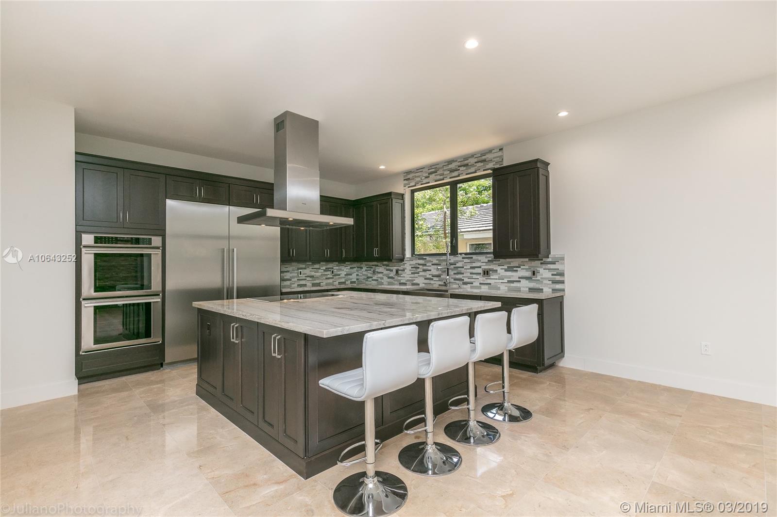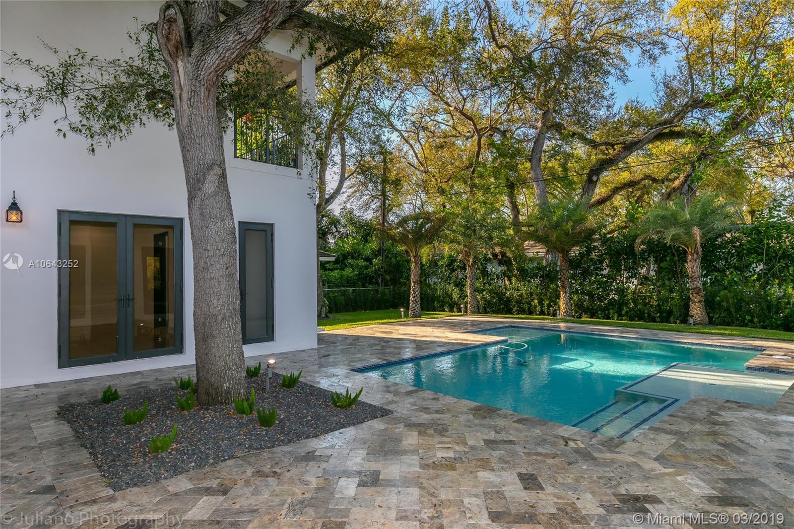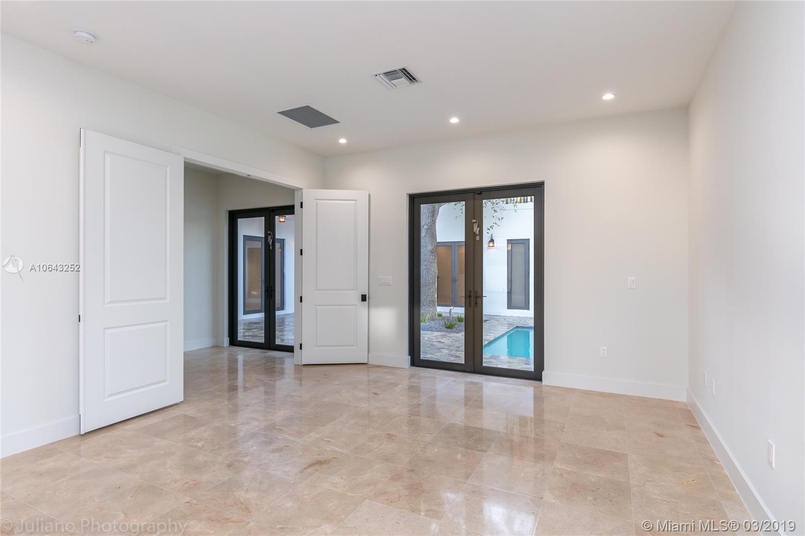 Must see gem in beautiful Coral Gables, this stunning recently built home near the Biltmore has 5 bedrooms and 5 baths with kitchen opening up to family room and wine cellar. Kitchen features all Thermador appliances with cook-top on granite island that accommodate family seating with 11-foot ceiling in common areas and impact windows & doors throughout. Entertainer's dream with its own recreation room on second floor with balcony and full bath. Master suite includes a beautiful tub, shower, and large walk-in closet. Brand new pool with large embedded sun deck and great terrace for entertaining and family gatherings. Wired for smart house capabilities, 2-car garage and outdoor storage closet. Located off Alhambra circle on beautiful dead-end street.