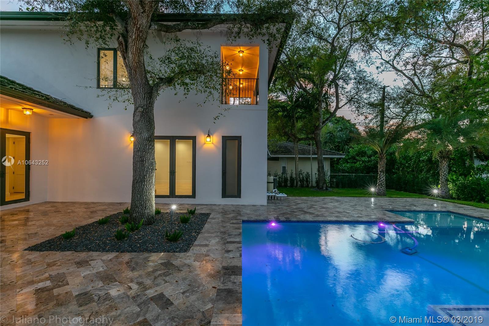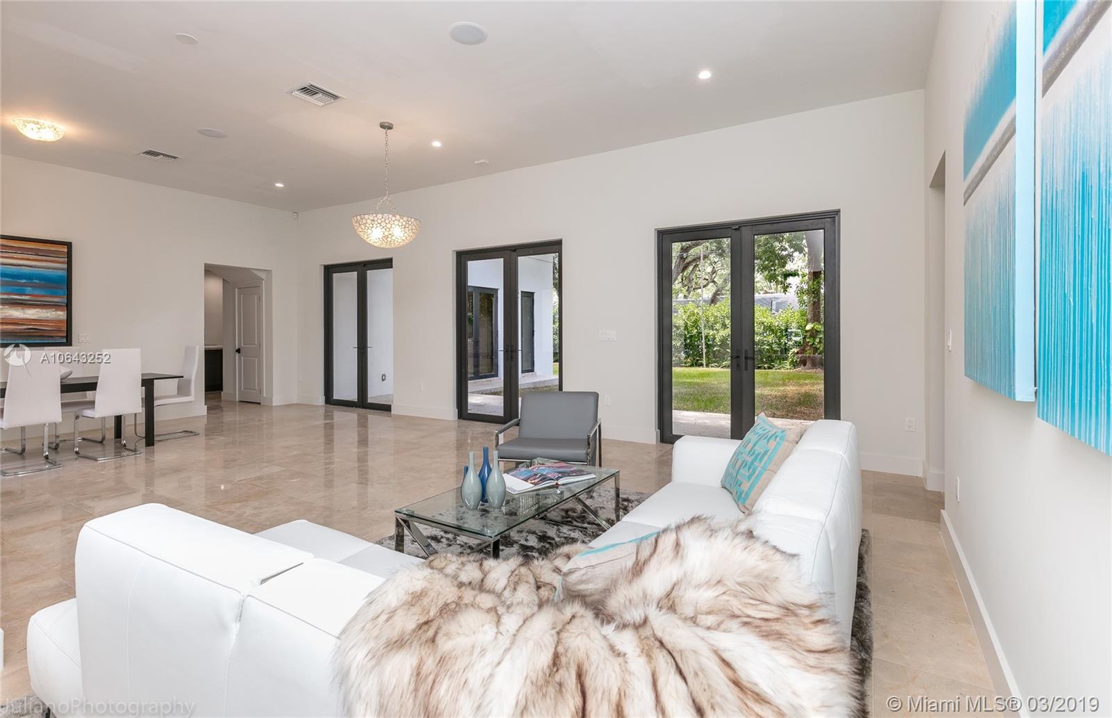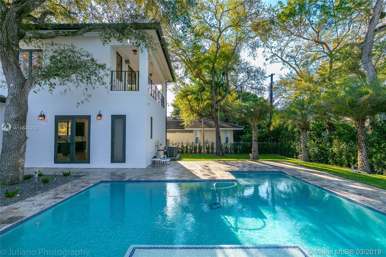 Must see gem in beautiful Coral Gables, this stunning recently built home near the Biltmore has 5 bedrooms and 5 baths with kitchen opening up to family room and wine cellar. Kitchen features all Thermador appliances with cook-top on granite island that accommodate family seating with 11-foot ceiling in common areas and impact windows & doors throughout. Entertainer's dream with its own recreation room on second floor with balcony and full bath. Master suite includes a beautiful tub, shower, and large walk-in closet. Brand new pool with large embedded sun deck and great terrace for entertaining and family gatherings. Wired for smart house capabilities, 2-car garage and outdoor storage closet. Located off Alhambra circle on beautiful dead-end street.