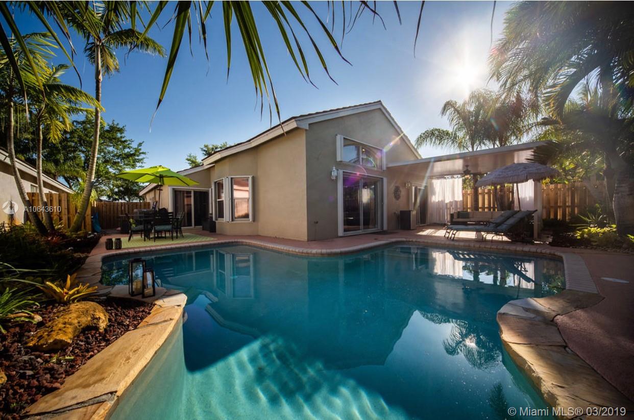 Very motivated sellers, will entertain all reasonable offers! 3 bed/2 bath with a garage converted into 4th bedroom w/ A/C & separate entrance that can also be used as office, gym, or media room. Beautiful home in gated community of Keystone Lakes features 16" Mexican Saltillo tiles in the main areas w/ wood laminate flooring in the bedrooms which all have California closets. The kitchen & bathrooms have wood cabinets & granite countertops, as well as stainless steel appliances & a brand new washer/dryer in laundry room. LED high hat lighting throughout illuminate residence which also has surround sound speakers in the spacious family room. In the backyard you will find an incredible outdoor oasis w/ a heated saltwater pool, a large insulated aluminum awning w/ a fan, & lush landscaping.
