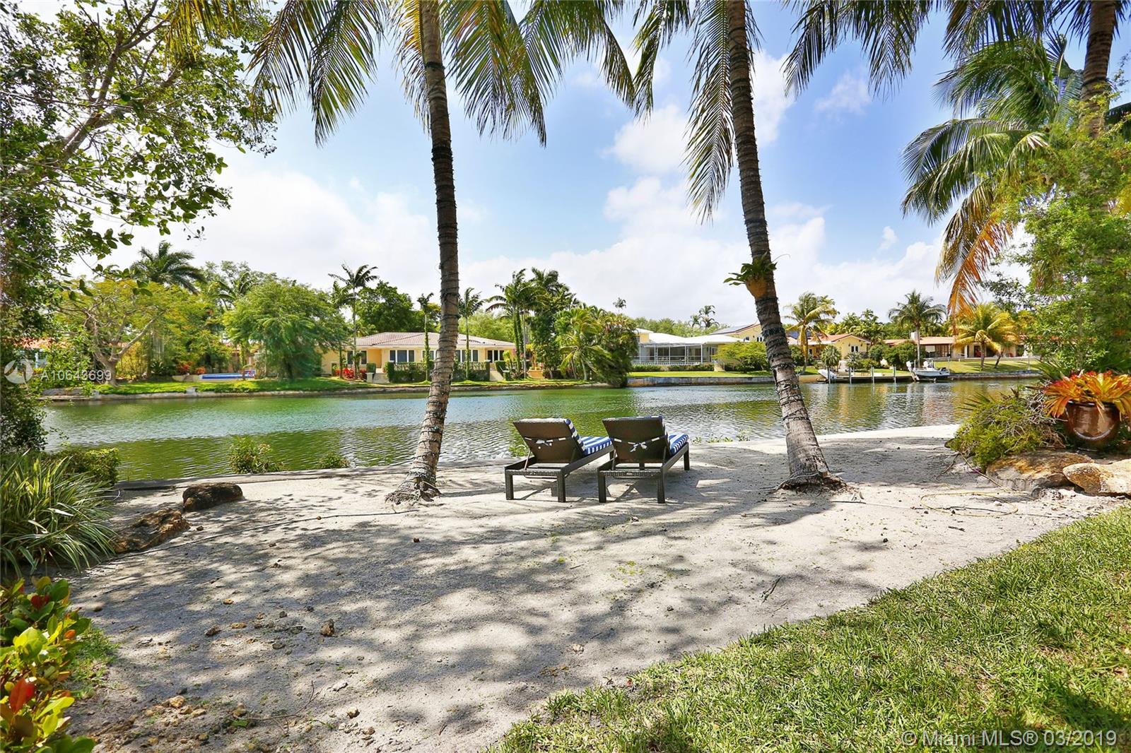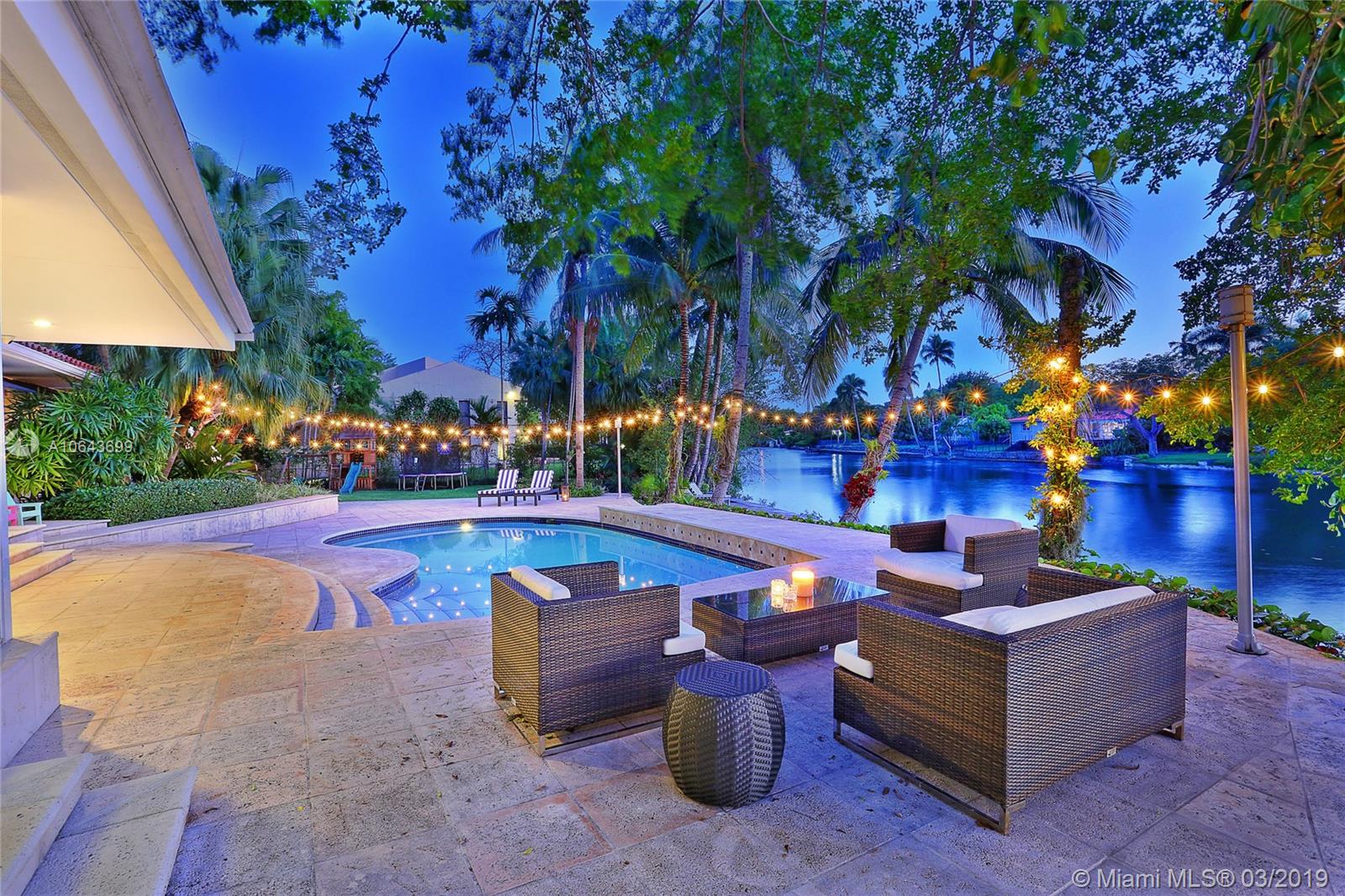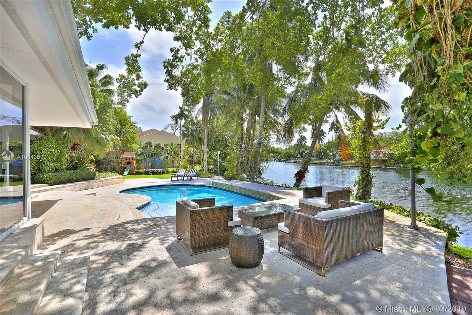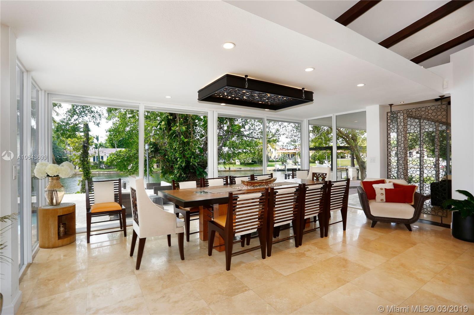 Set perfectly on .75 acre waterfront lot, this spacious home offers a serene setting for ultimate relaxation or large scale entertaining. Immediately upon entering the home you are amazed by the glorious view of the waterway through the floor to ceiling doors. With an open floor plan, featuring great room and volume ceilings, this home has been substantially updated, including impact windows and doors. The master suite and 3 family bedrooms with en-suite baths are located to one side. On the opposite side are 2 additional bedrooms with en-suite baths for grown children, in-laws or live-in help. The spectacular pool deck with built-in seating is perfect for entertaining or dining al fresco. Private beach setting overlooking the waterway is perfect for sunbathing and relaxing by the water.