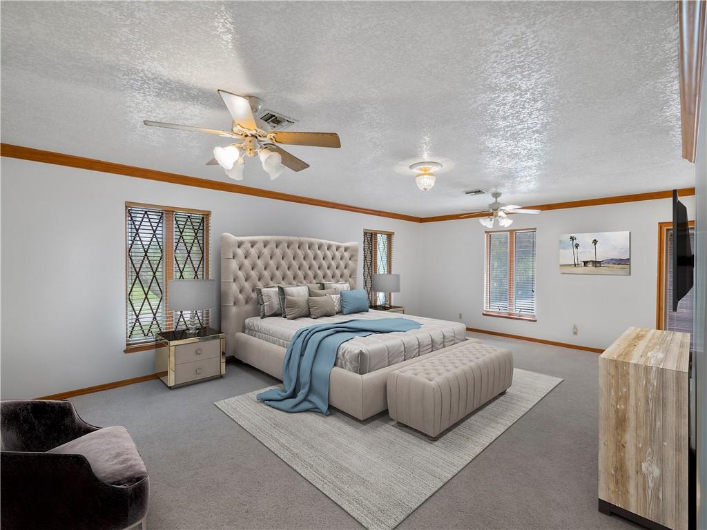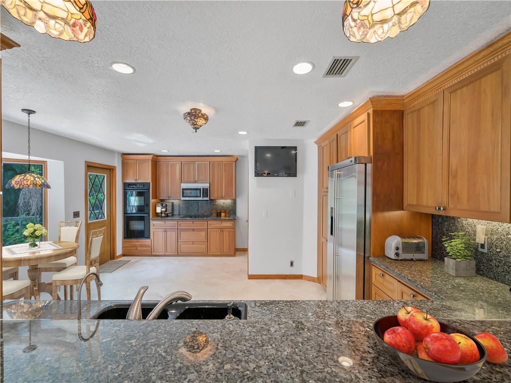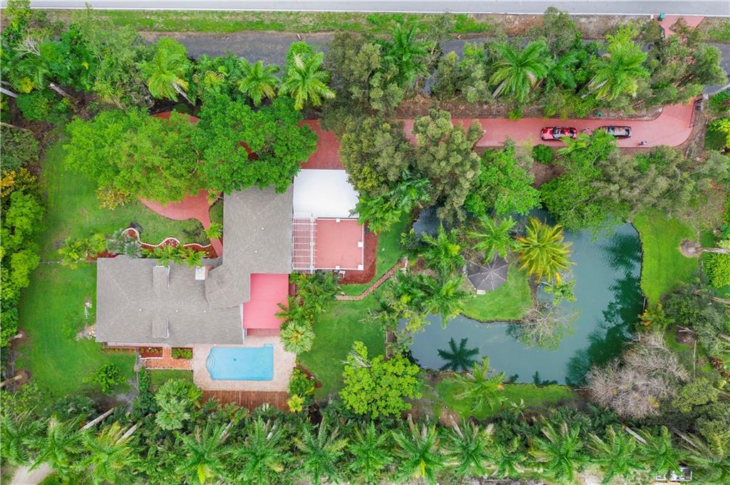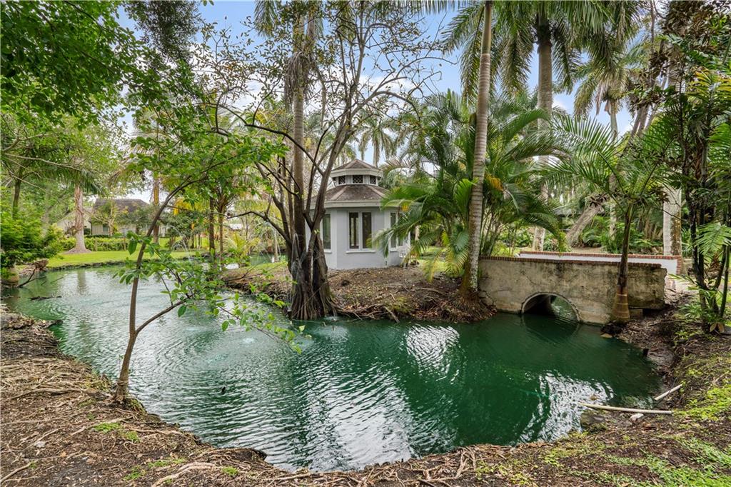 Beautiful Custom Built 5BR/4.5 BA, Swiss Chalet Style Home on park like setting on over 1.28 acres w/pool & 3CG. Private electronic entry gate w/video camera at bridge entry provides 24 hour recording surveillance. Mature oaks, royal palms, fruit and nut trees provide shade, beauty and tranquility. Private lagoon pond with fountains lead you to the rotunda in front of house. Elegant 2 story foyer entry features a custom wood staircase w/imported European antique tile. Living area features beautiful solid oak floors w/crown molding. New carpets in bedrooms. Eat in kitchen w/breakfast nook has marble floors & European wood cabinets, granite counter tops and s.s. appliances. The entire 2nd floor is a huge master suite. Private pond w/foot bridge that leads to island gazebo in center of pond.