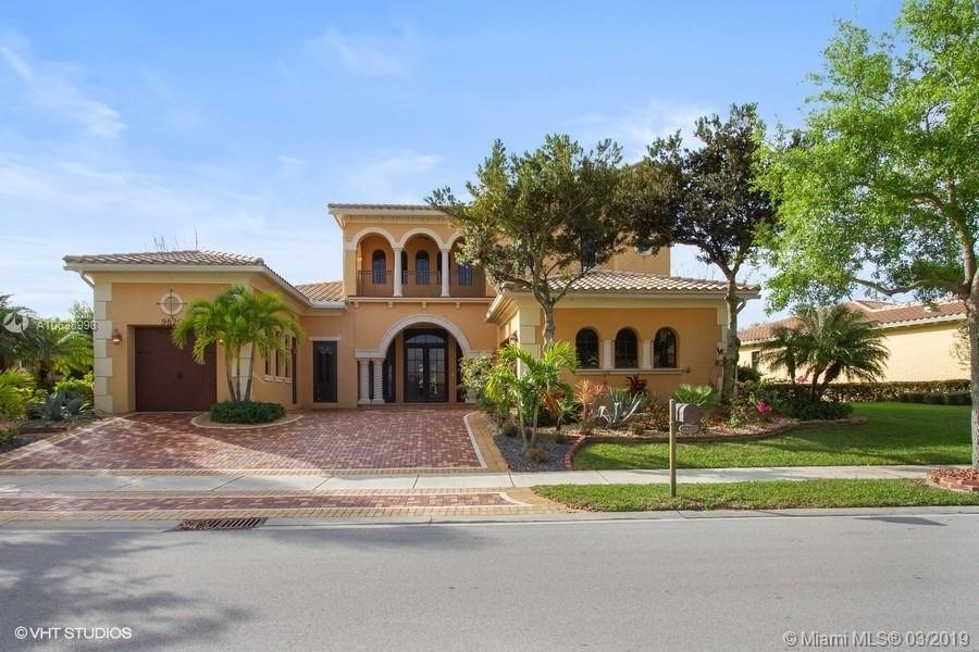 CORPORATION RELOCATION AND PRICED TO SELL. Located on the north end of PGCC in desirable Gables Estates! You'll love the large open spaces that flow outside to the two covered patios where you can create your outdoor living areas. Enjoy your modern, sparkling pool and admire the tranquil golf course beyond. Marble floors, solid wooden doors, and elegant cabinetry throughout. The kitchen features a triple island ideal for enjoying breakfast and PERFECT FOR ENTERTAINING. The Grand Entrance with volume ceilings creates an elegant welcoming. Play a round of golf, or visit The Sports Club or Spa Cielo. As a homeowner at Parkland Golf and Country Club, you'll have a social membership, with access to amenities such as dining at Ninety-One, tennis, and more. Enjoy this luxurious lifestyle.